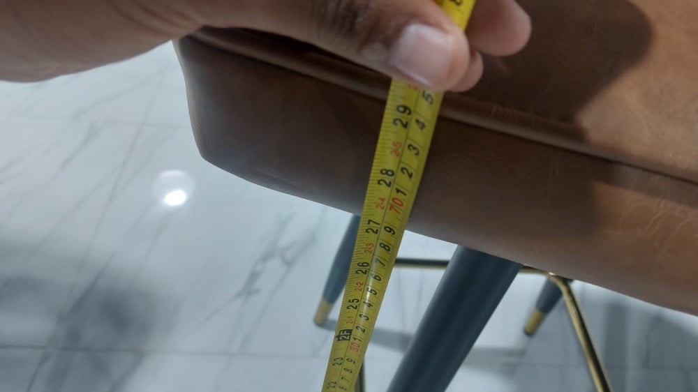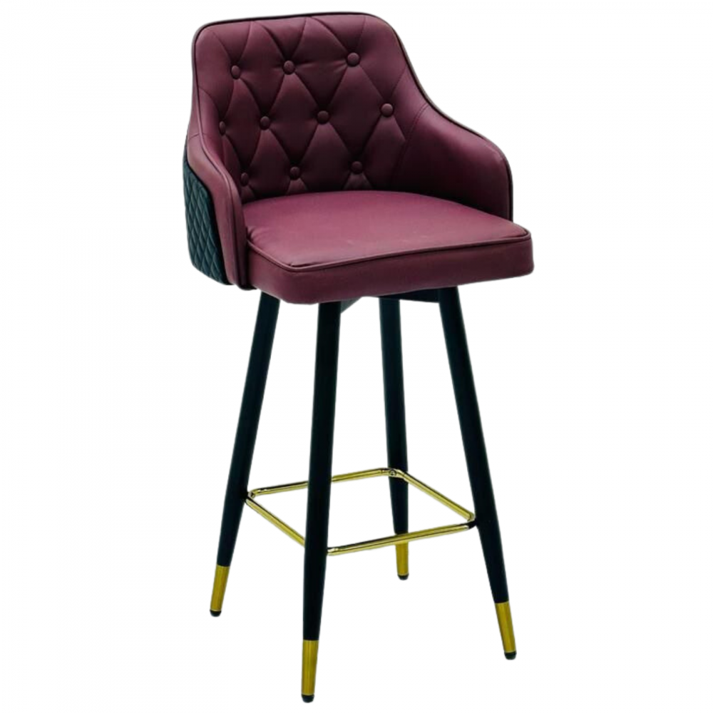 للحصول على تصاميم كراسي بار فاخرة وانيقة ننصحك بكرسي البار هذا المصنوع من الجلد الطبيعي المحشي بالإسفنج الطري لتوفير أعلى مستوى من الراحة، هذا الكرسي مزود بمسند ظهر وأذرع لمزيد من الراحة أثناء الجلوس، يتميز بأرجل من الحديد مزينة من الأسفل بطلاء ذهبي لإضافة المزيد من الفخامة على التصميم.