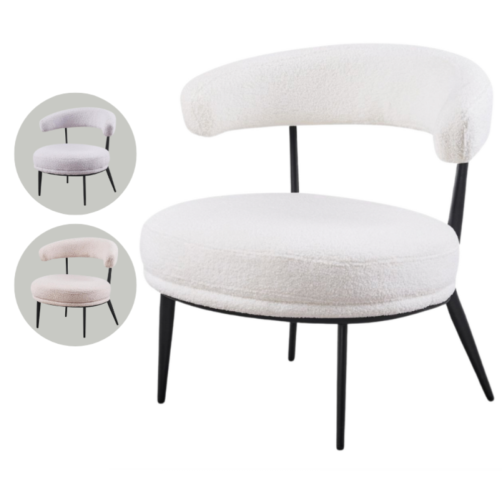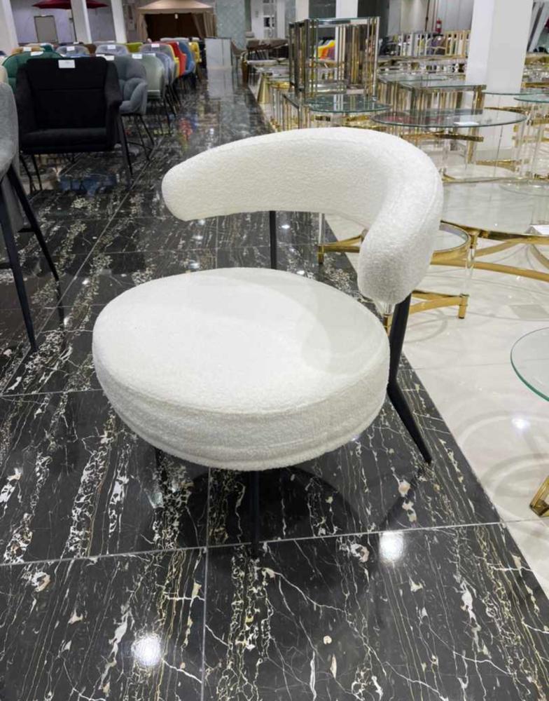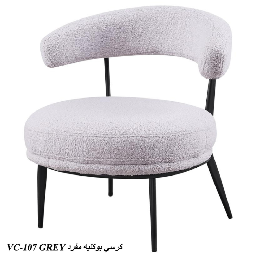 نقدم لكم في متجر ستار هومي واحد من أجمل تصاميم كراسي الجلوس كونه مميز بتصميم يجمع بين البساطة والعصرية، مزود بمقعد دائري مبطن بالإسفنج الطري ومسند ظهر بشكل نصف دائرة ممتدة نحو الأذرع، كما يتميز بكونه مصنوع من قماش البوكليه الفخم والفاخر.