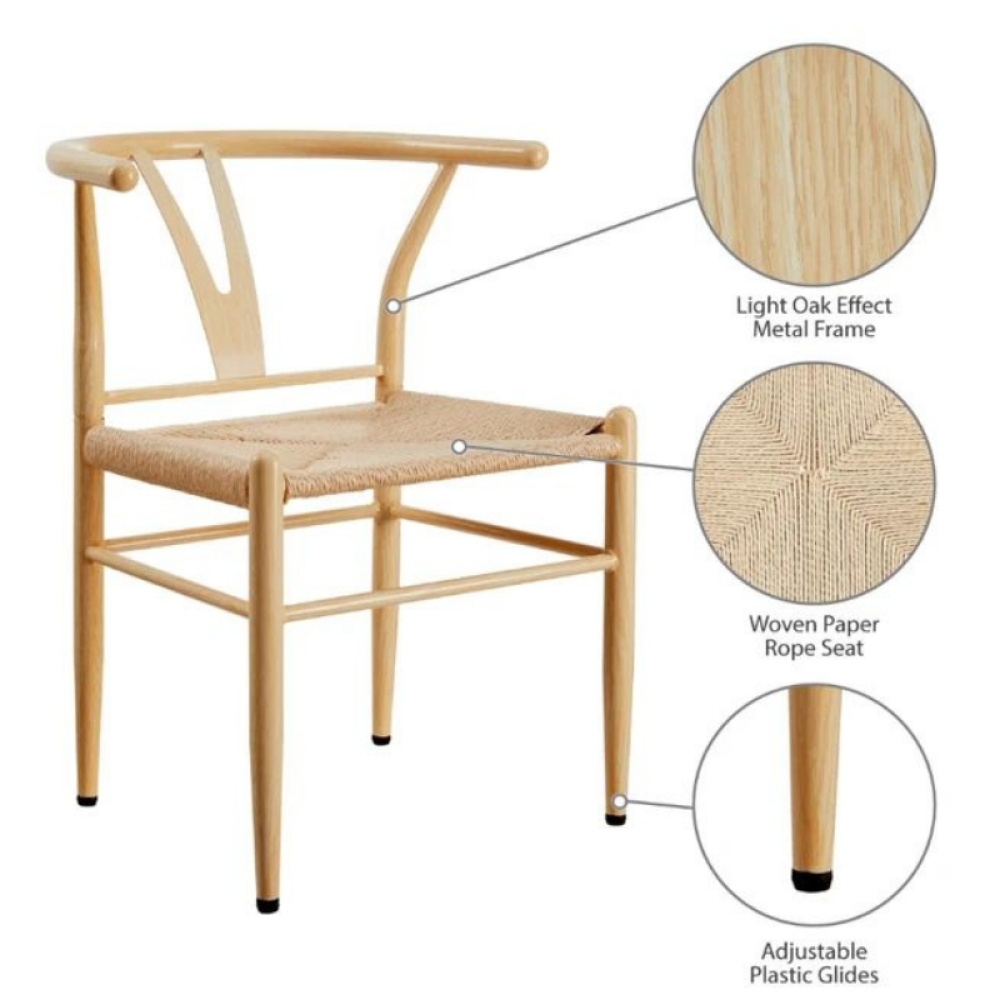 لإضافة لمسة من الأناقة والحداثة إلى الديكور المنزلي ننصحك بطلب هذا الكرسي المصنوع من أجود المواد والمميز بمسند ظهر بشكل حرف Y لتوفير المتانة والتميز للتصميم كما تم تصميم مسند الظهر بشكل منحني ممتد للأذرع لتوفير الراحة.