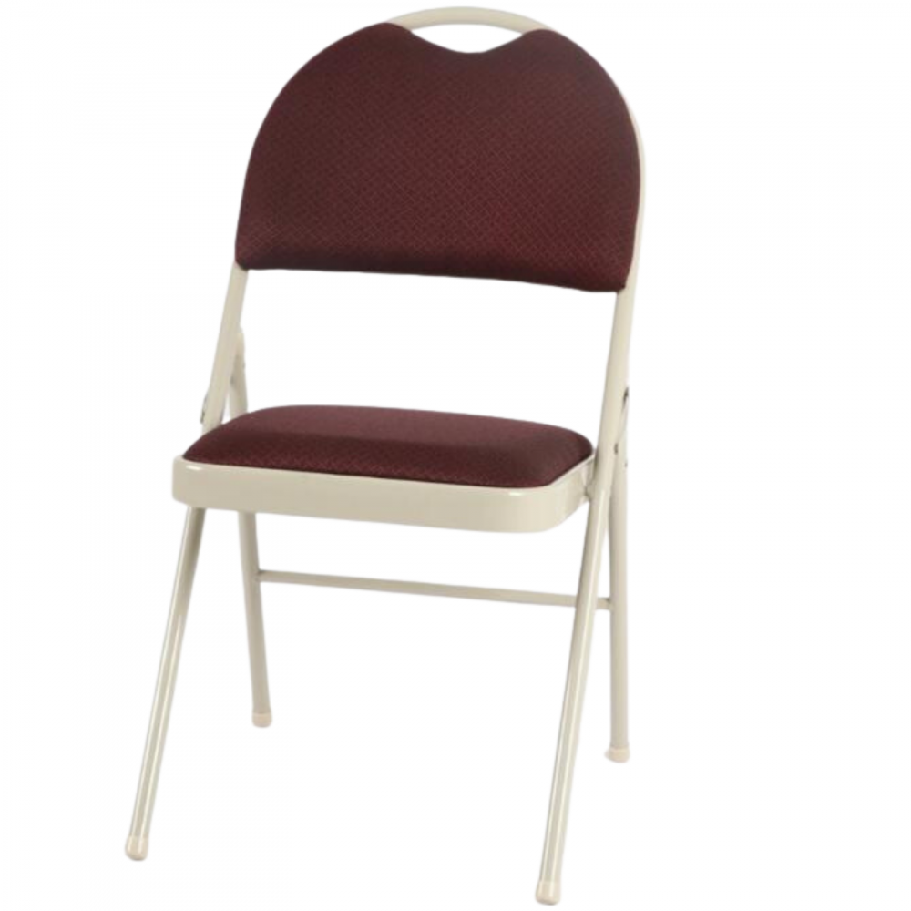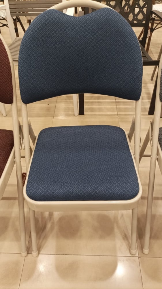 من أفضل تصاميم الكراسي العملية وأكثرها طلبا هي الكراسي القابلة للطي لما توفره من سهولة حملها والتنقل بها للخارج والداخل بالإضافة إلى سهول تخزينها دون أن تشغل مساحة كبيرة لذلك قمنا باختيار هذا الكرسي المصنوع من مواد متينة تتحمل الأوزان ومزود بمسند ظهر ومقعد مبطنان بالإسفنج المضغوط لتوفير الراحة أثناء الجلوس.