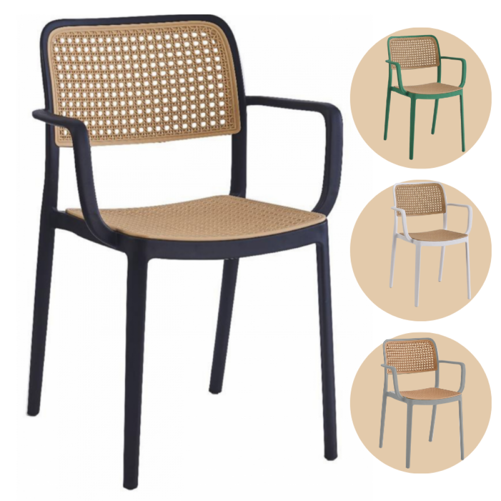 ضمن مجموعة الكراسي المختارة لكم في متجر ستار هومي نقدم لكم هذا الكرسي المصنوع من الفايبر المقاوم للحرارة والامطار ومزود بمقعد ومسند ظهر شبكي لتوفير اعلى مستوى من التهوية والراحة أثناء الجلوس، كما يتميز بمسند للأذرع لمزيد من الراحة.