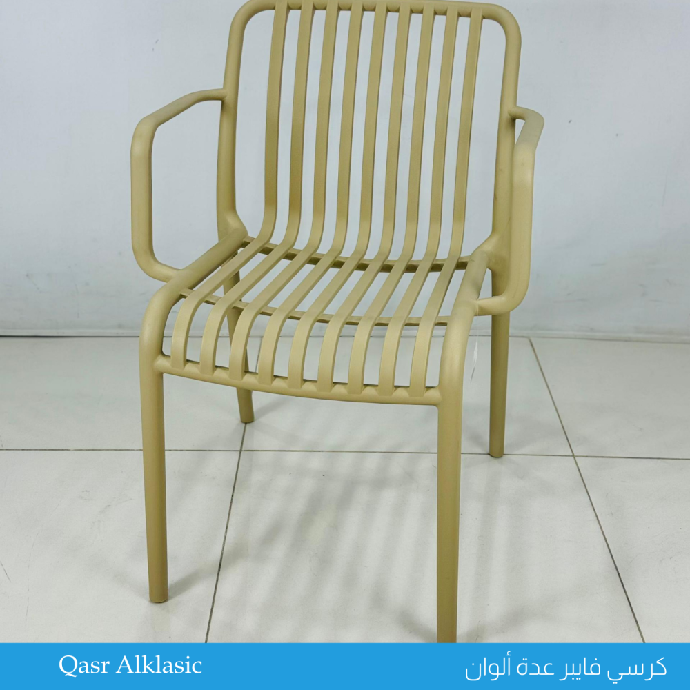 كرسي جلوس مصنوع من الفايبر المقاوم للحرارة والماء ولجميع العوامل الجوية بتصميم مزود بمقعد ومسند ظهر بشكل قضبان ومزود بمساند للأذرع لتوفير الراحة أثناء الجلوس، يمكنك اختياره ككراسي حديقة أو كراسي انتظار.