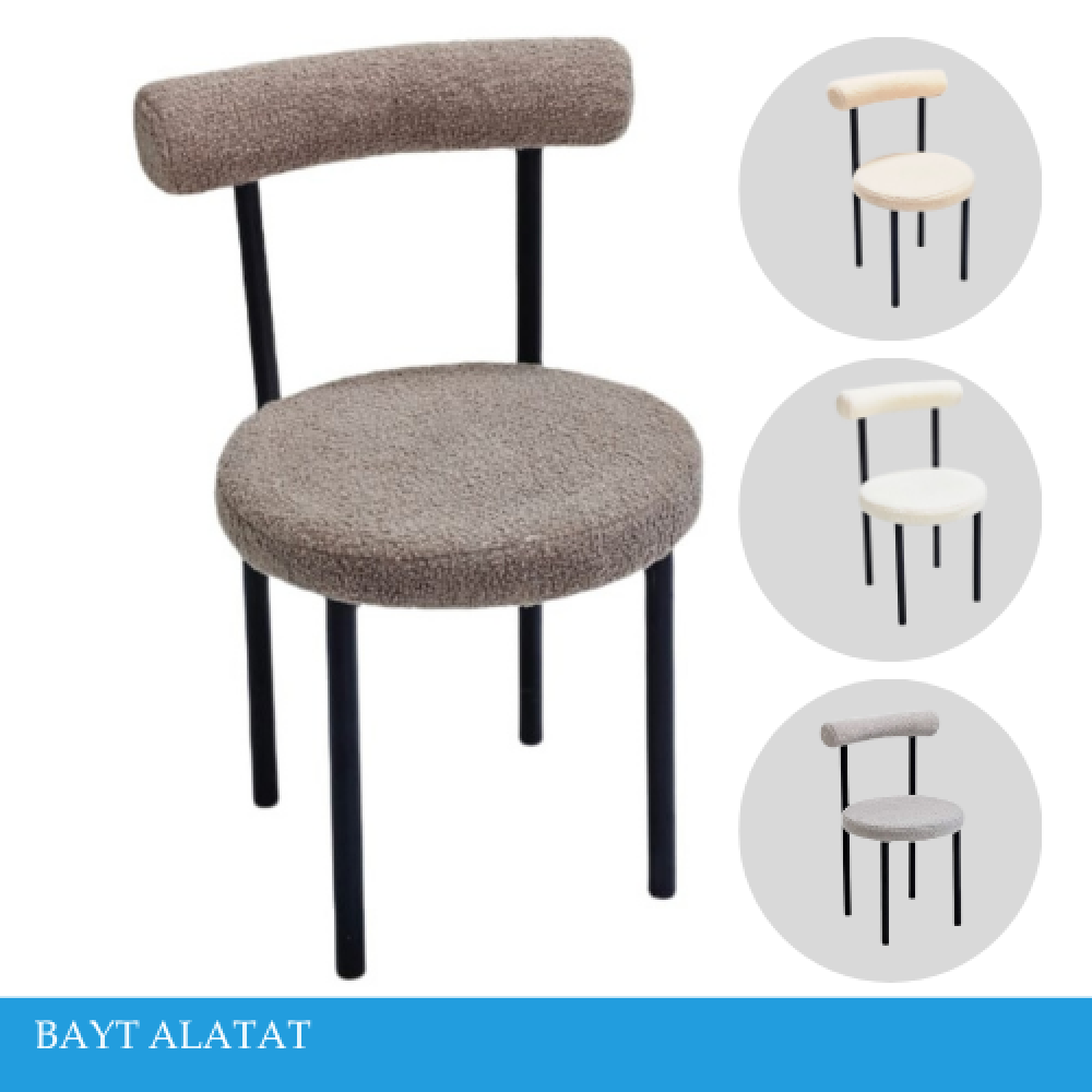 كرسي أنيق يجمع بين الراحة والتصميم العصري بلمسة قماش البوكليه الناعم. مثالي لاستخدامه ككرسي كوفي أو ضمن طقم طاولة طعام، كما يضيف لمسة فخمة لأي ركن في منزلك.