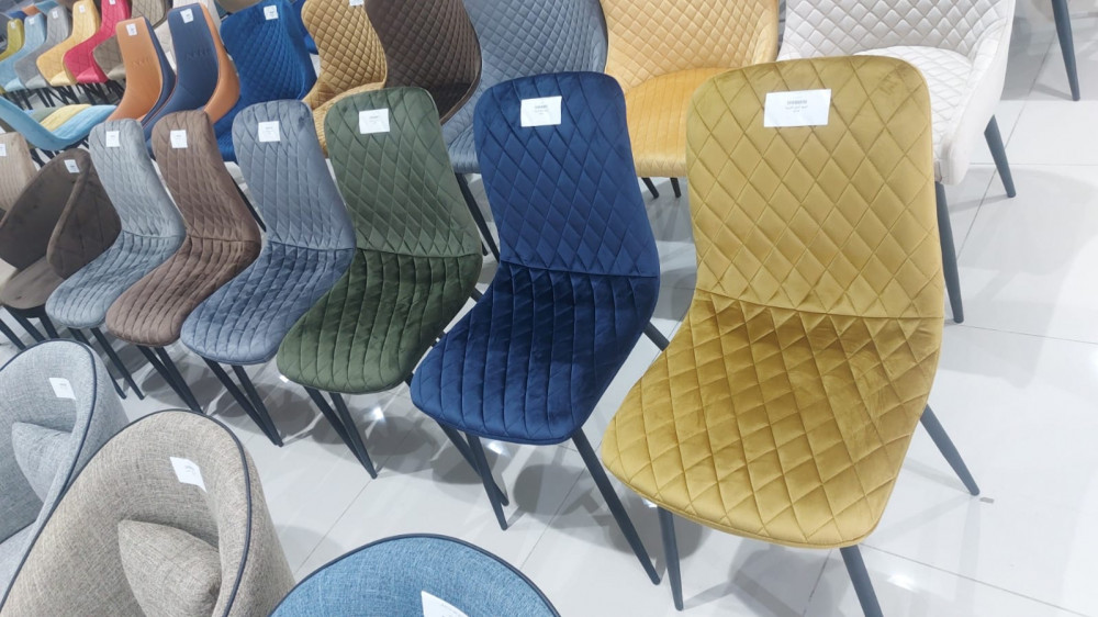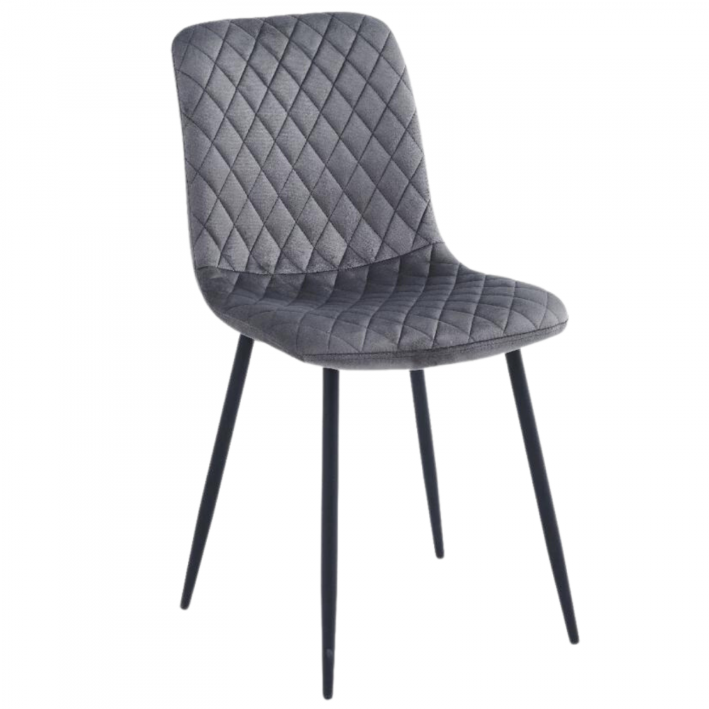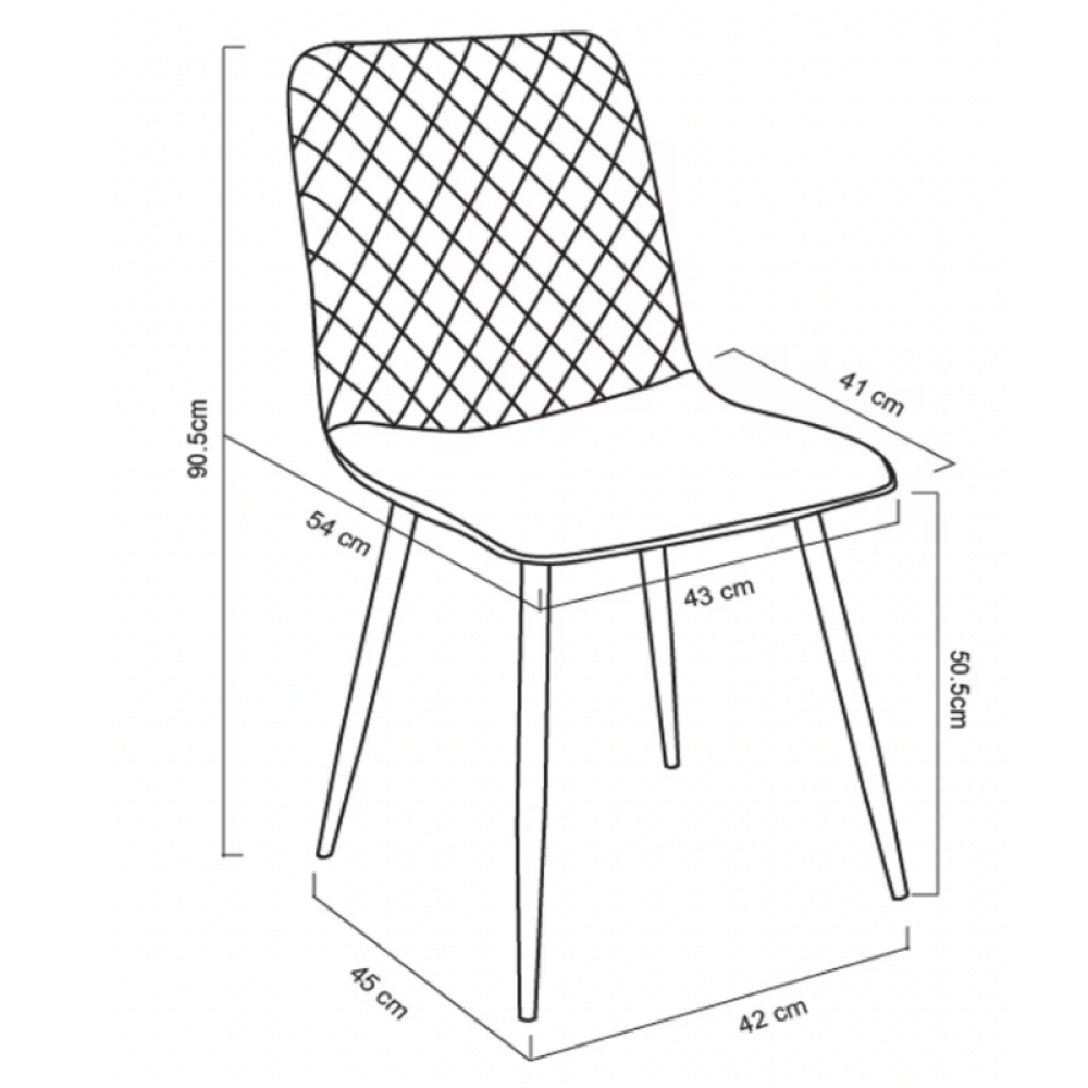 كرسي طعام مصنوع من أجود أنواع المخمل الفاخر بتصميم مزين بدرزات بشكل معينات متجاورة لإضافة لمسة من الأناقة، ومزود بأرجل من الحديد المتين المقاوم للاهتراء والكسر لسنين طويلة، هذا الكرسي مناسب لطاولة الطعام أو لغرف الانتظار ومكاتب العمل.