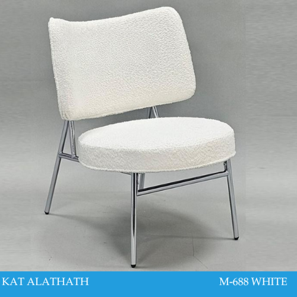 كرسي فاخر مودرن بتنجيد ناعم من قماش البوكليه الأبيض، يصنع تصميمًا عصريًا يلفت الانتباه في أي غرفة. مريح، ذكي، ويمنحك لمسة أنيقة تضيف دفء وأناقة للمكان.