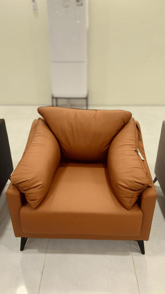 لا تتردد سيدي في إضافة هذه الكنبة المفردة لديكور المنزل أو مكتب العمل، وذلك كونها مصنوعة من أجود أنواع الجلد الطبيعي المحشو بطبقة سميكة وطرية من الإسفنج لتوفير الراحة أثناء الجلوس، هذه الكنبة مزودة بأرجل معدنية متينة ومقاومة للكسر. كما أنها تأتي مع تكايات جانبية لمزيد من الراحة