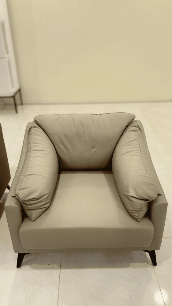 لا تتردد سيدي في إضافة هذه الكنبة المفردة لديكور المنزل أو مكتب العمل، وذلك كونها مصنوعة من أجود أنواع الجلد الطبيعي المحشو بطبقة سميكة وطرية من الإسفنج لتوفير الراحة أثناء الجلوس، هذه الكنبة مزودة بأرجل معدنية متينة ومقاومة للكسر. كما أنها تأتي مع تكايات جانبية لمزيد من الراحة