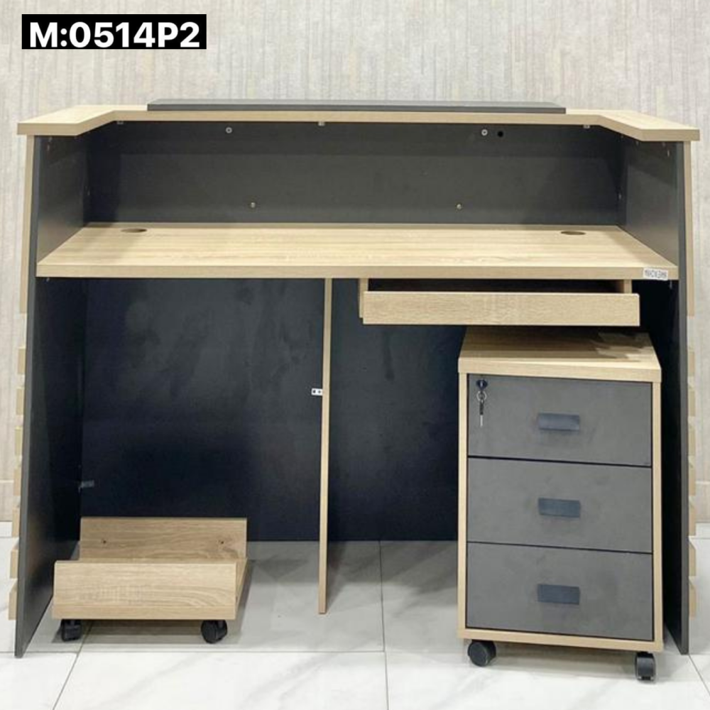 اضيف لمسة من الفخامة والتميز لديكور مكتب العمل أو العيادات أو المجمعات التجارية والمدارس مع كونتور الاستقبال هذا المصنوع من الخشب الطبيعي الفاخر والمميز بتصميم مزود بإنارة داخلية، هذا المكتب مزود بمكان لوضع الحاسب بالإضافة إلى مجموعة من الأدراج لوضع الأغراض الشخصية ومستلزمات العمل.