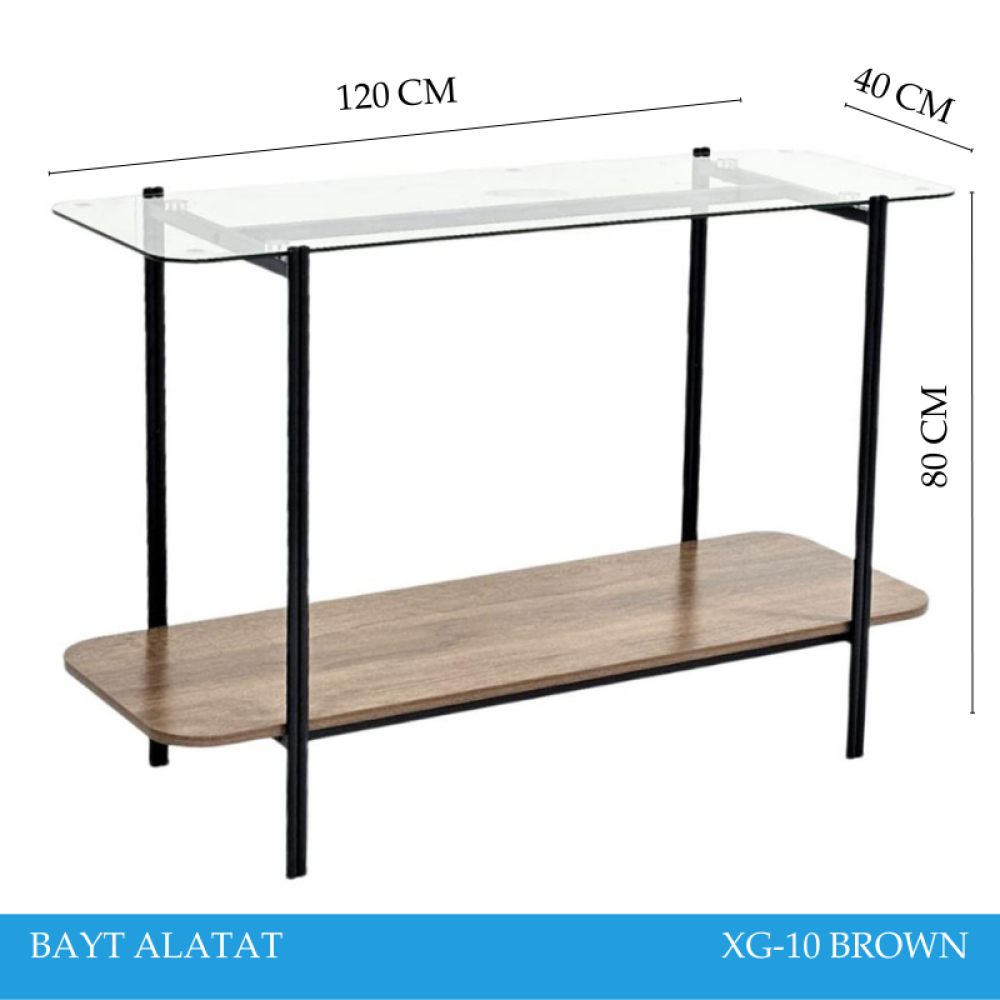من المهم جداً الاعتناء بمدخل المنزل من خلال اختيار طاولة الكونسول المثالية التي تعكس الانطباع الأول المعبر عن رقي واناقة المنزل، لذلك نقدم لك سيدتي طاولة الكونسول هذه المصممة بشكل مستطيل بحواف منحنية لإضافة لمسة من الانسيابية للتصميم ومزودة برف علوي من الزجاج الشفاف ورف سفلي يمكنك استخدامه لوضع بعض التحف وقطع الكريستال.