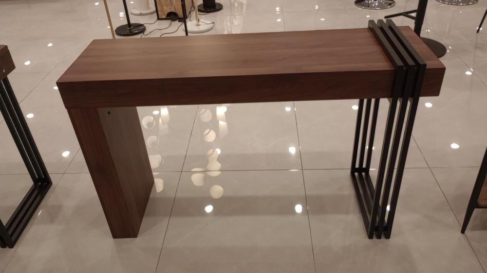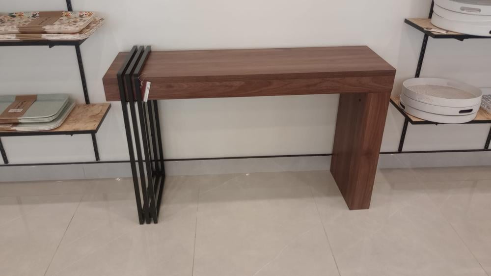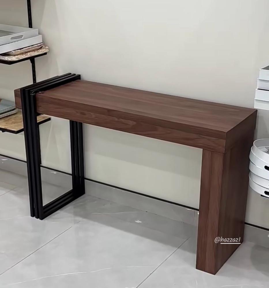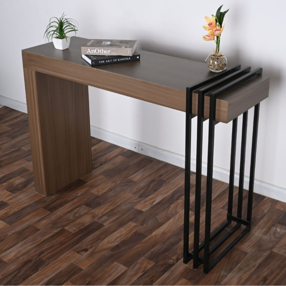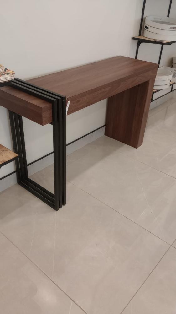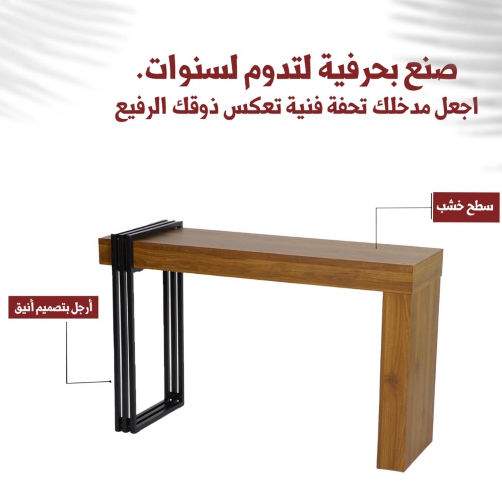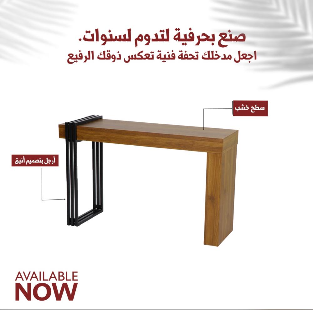 لإضافة لمسة من العصرية والحداثة لديكور مدخل المنزل نقدم لكم في متجر ستار هومي طاولة المدخل هذه المصنوعة من الخشب ومزودة بحامل معدني من طرف واحد يضفي لمسة من التميز للتصميم، هذه الطاولة سوف توفر انطباع أولي يوحي بالفخامة والعصرية عند زوار المنزل،