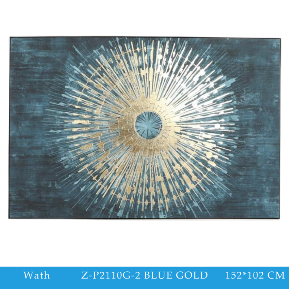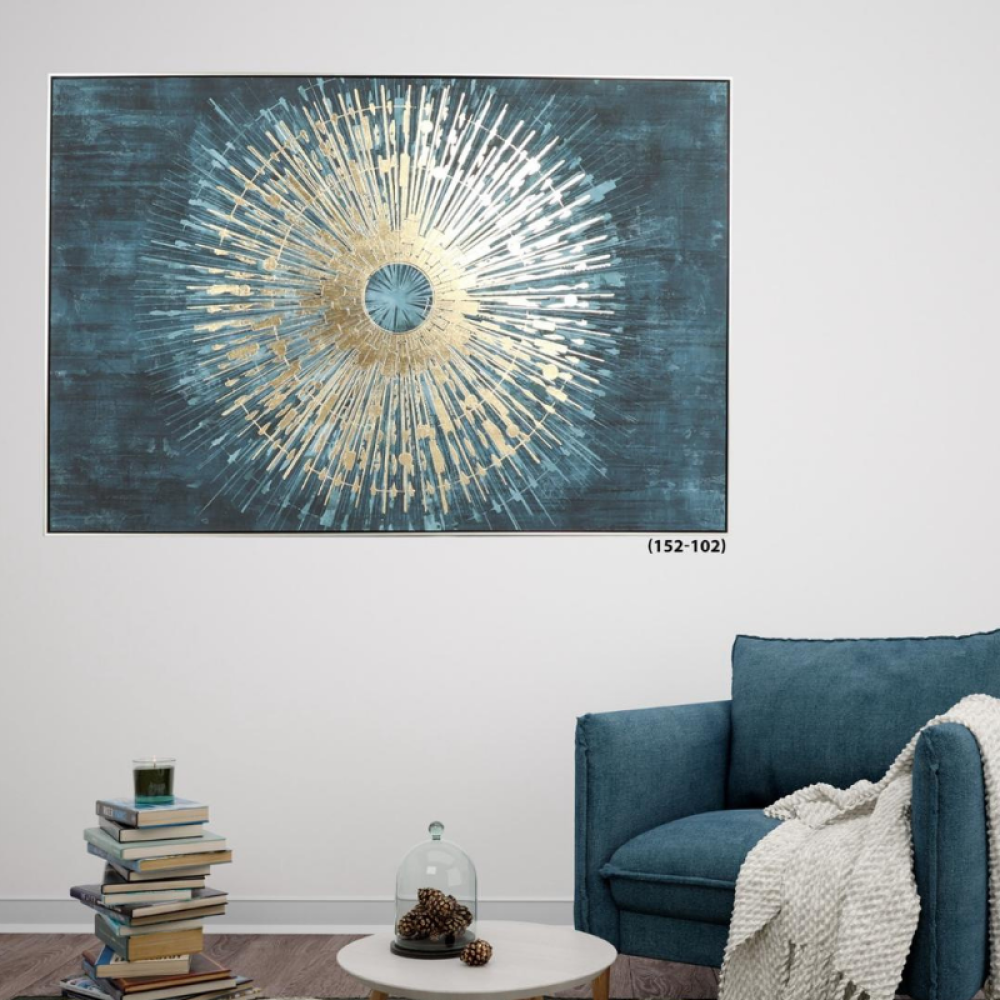 اجذب انظار زوار المنزل لروعة اختيارك للديكور مع هذه اللوحة الفنية المصممة بمزيج من اللونين الذهبي والأزرق اللذان يضفيان لمسة من الفخامة على الديكور المحيط، من خلال تصميم اللوحة فإنها توحي بالبعد والمدى مما يوحي بزيادة حجم الغرفة كما أنها تعتبر من اللوحات المريحة للنظر وتعمل على تهدئة المشاعر ونشر الطاقة الإيجابية.