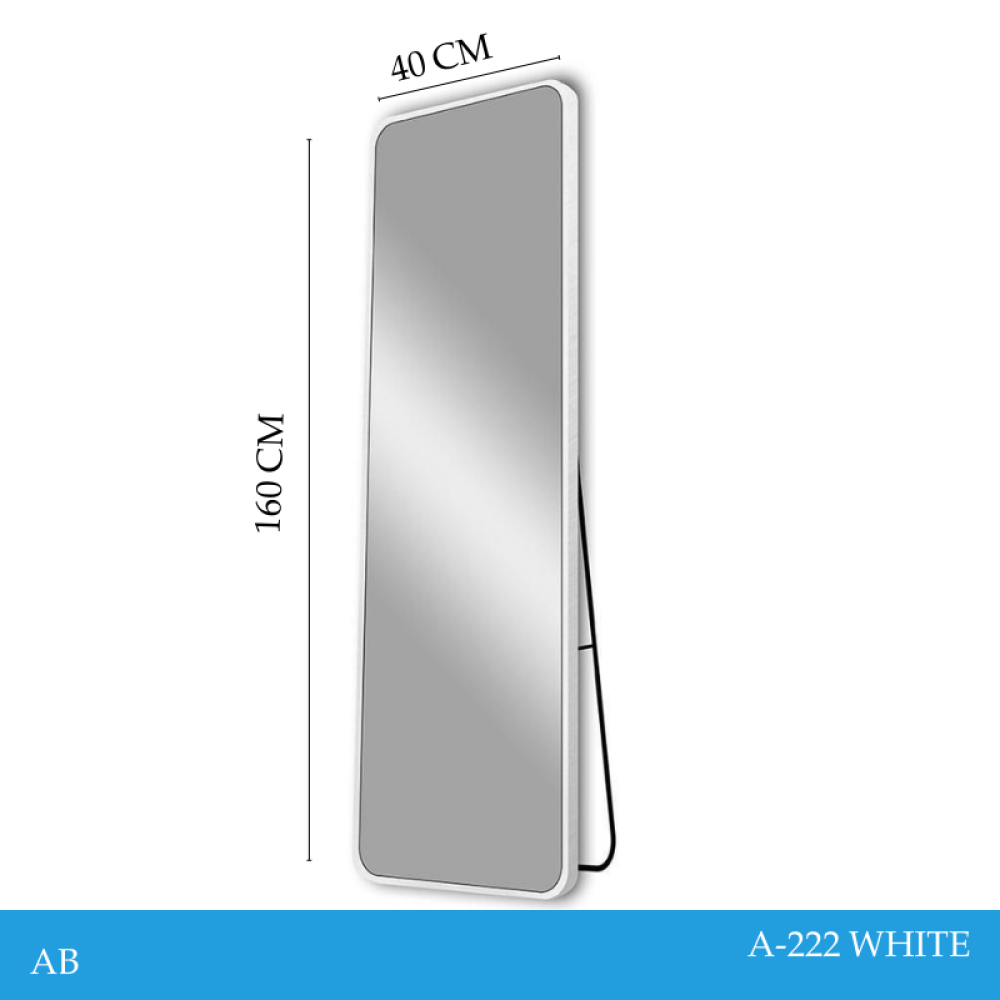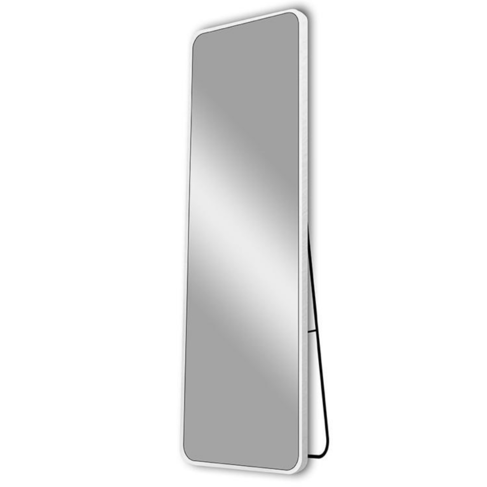 مرآة أرضية مزودة بإطار وحامل فاخر من المعدن المتين بلون أبيض يضفي لمسة من الفخامة على المحيط مميزة بحجم كبير يوفر رؤية كاملة لإطلالتك، تتميز المرآة بكونها مصنوعة من مواد معالجة مقاومة للكسر، يمكنك إضافتها لديكور غرفة النوم أو الصالون كما يمكن استخدامها في مراكز التجميل ومجمعات التسوق.