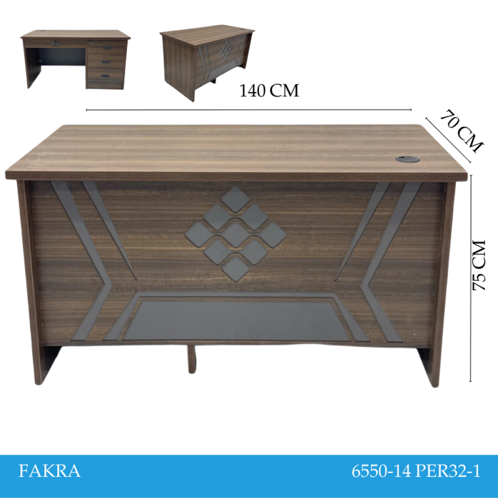 الفخامة والرقي والعصرية تجتمع جميعها في تصميم مكتب العمل هذا المصنوع من أجود أنواع المواد المتينة والمقاومة للاهتراء، مزود بأدراج يمكن استخدامها لوضع الأوراق والمستندات الهامة، هذا المكتب سوف يشكل إضافة رائعة وفاخرة لديكور مكتب العمل.