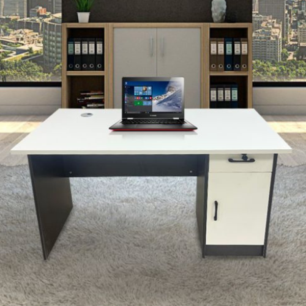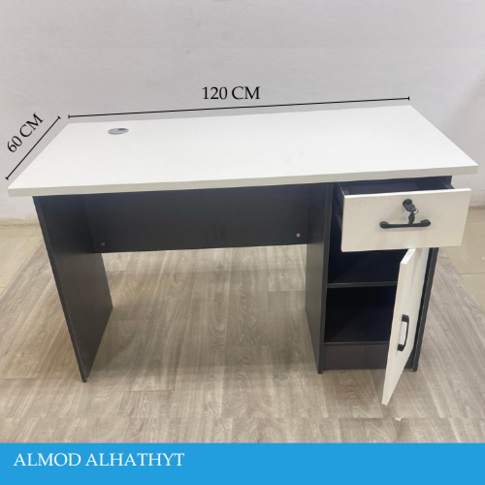 أضف لمسة عصرية لمكتبك أو منزلك مع هذا المكتب المودرن الأنيق، باللون الأبيض والأسود الذي يناسب جميع الديكورات. يتميز بسطح واسع (120×60 سم) للعمل براحة، مع درج علوي وخزانة جانبية لتخزين المستلزمات وتنظيم المساحة. تصميمه العملي يجمع بين الجمال والوظيفة، ليكون خيارًا مثاليًا للعمل، الدراسة، أو حتى الاستخدام المنزلي.
