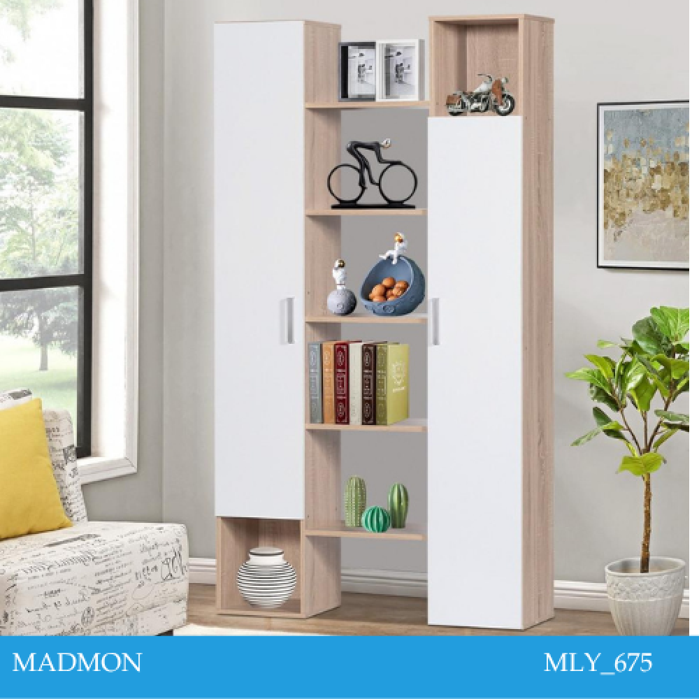 وحدة تخزين مع ادراج وبابين لون بني فاتح وابيض