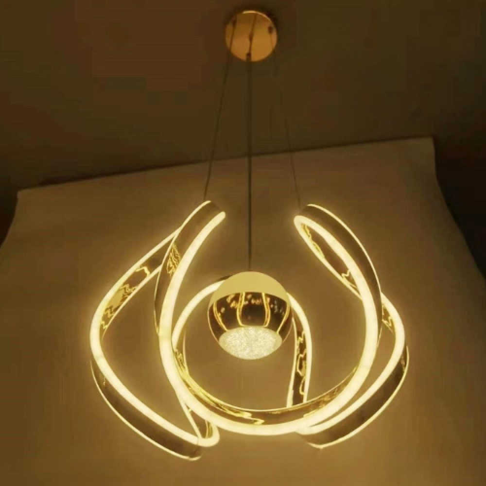 تصميم عصري فاخر يجمع بين الفن والعملية، حيث تتداخل الأذرع الذهبية المضيئة في حركة انسيابية تشبه الموجات، لتمنح المكان مظهرًا جذابًا ومضيئًا في آن واحد. تأتي مع كرة مركزية مضيئة تضيف لمسة توازن وأناقة، مما يجعلها مثالية كقطعة ديكور محورية في الصالات أو المجالس الحديثة. إضاءتها الدافئة تمنح أجواءً مريحة وفاخرة، مع جودة تصنيع عالية تضمن المتانة والجمال لسنوات.