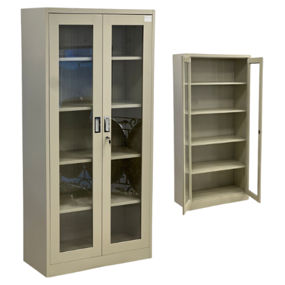دولاب حديد وقزاز لون بيج