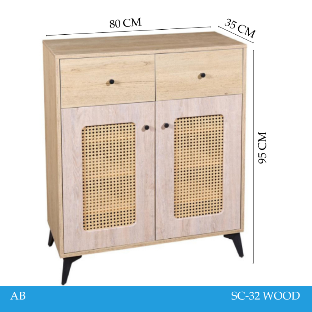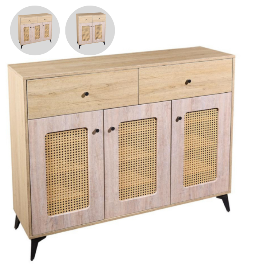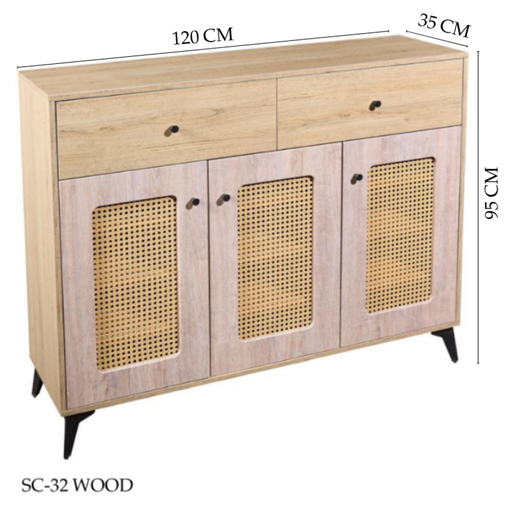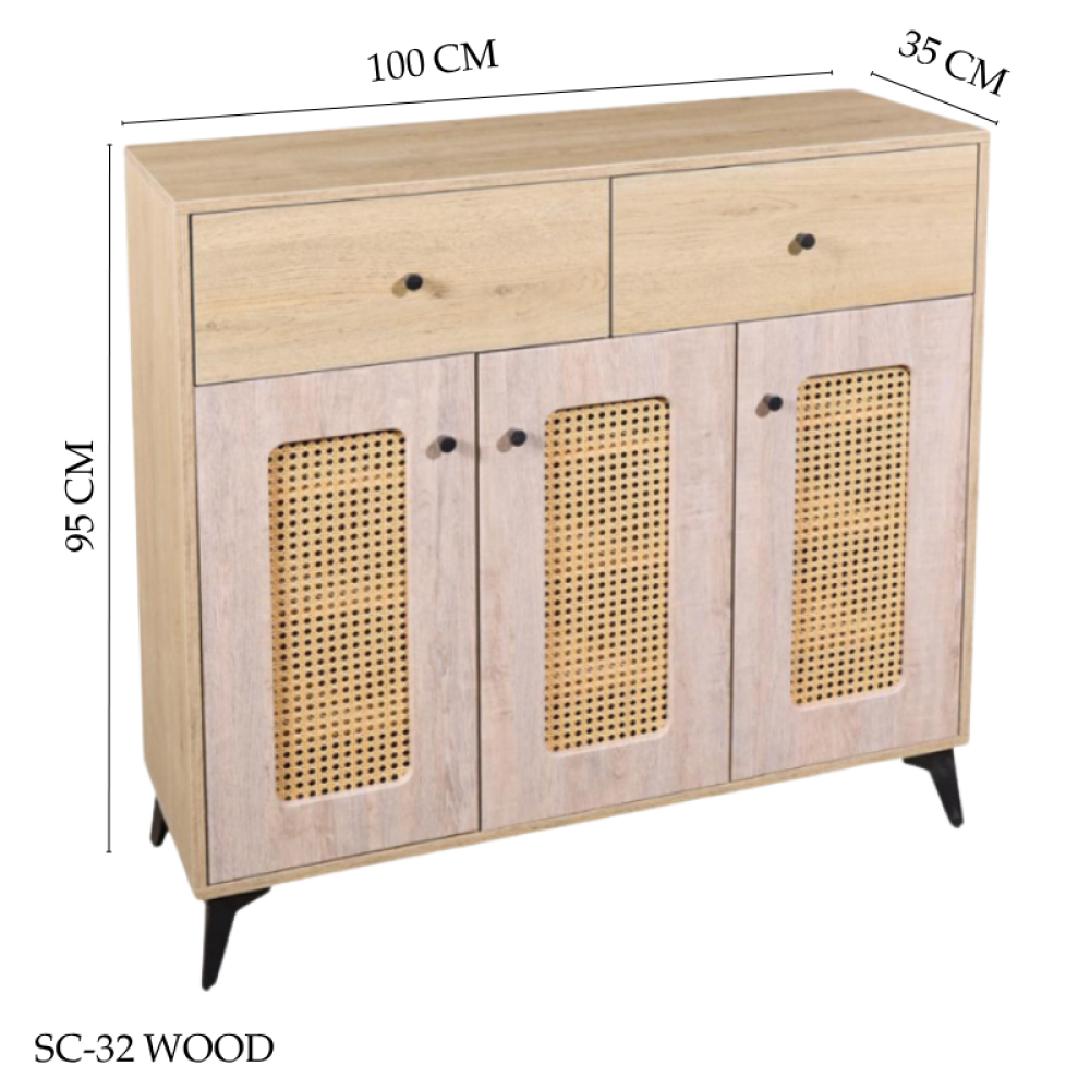 • الخامة: هيكل خشبي مع أبواب رتان
