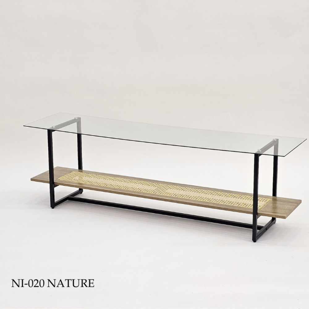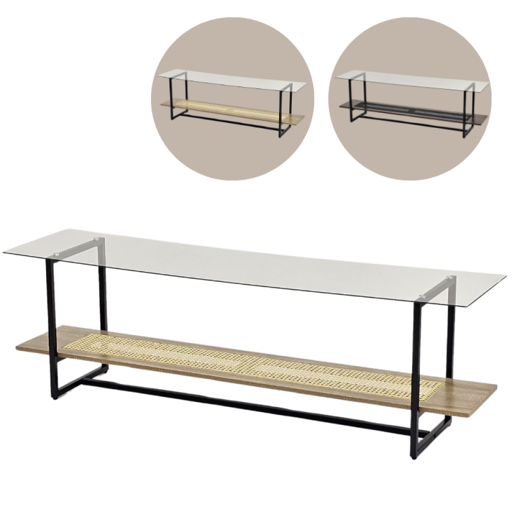 لمحبي البساطة والعصرية في اختيار قطع الأثاث المنزلية اخترنا لكم طاولة البلازما هذه المميزة بتصميم بسيط، مزودة بسطح من الزجاج الشفاف بالإضافة لرف سفلي مصنوع من الراتان الفخم، هذه الطاولة سوف تشكل إضافة مميزة لديكور غرفة المعيشة.