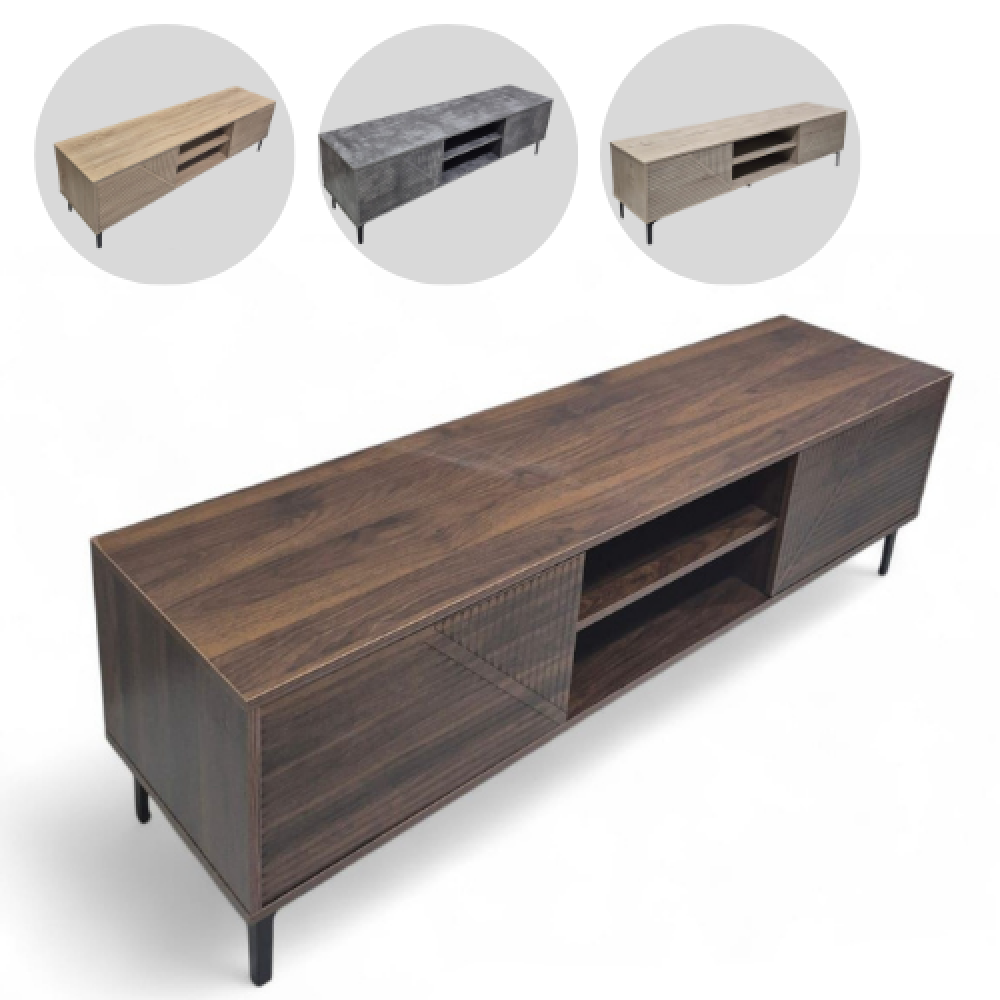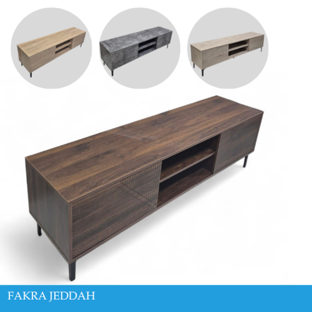 طاولة تلفاز عصرية وأنيقة تجمع بين الجمال العملي والمتانة. متوفرة بطولين مختلفين لتناسب المساحات المتنوعة، وتتميز بخزانة واسعة توفر تخزينًا منظمًا للأدوات الترفيهية.