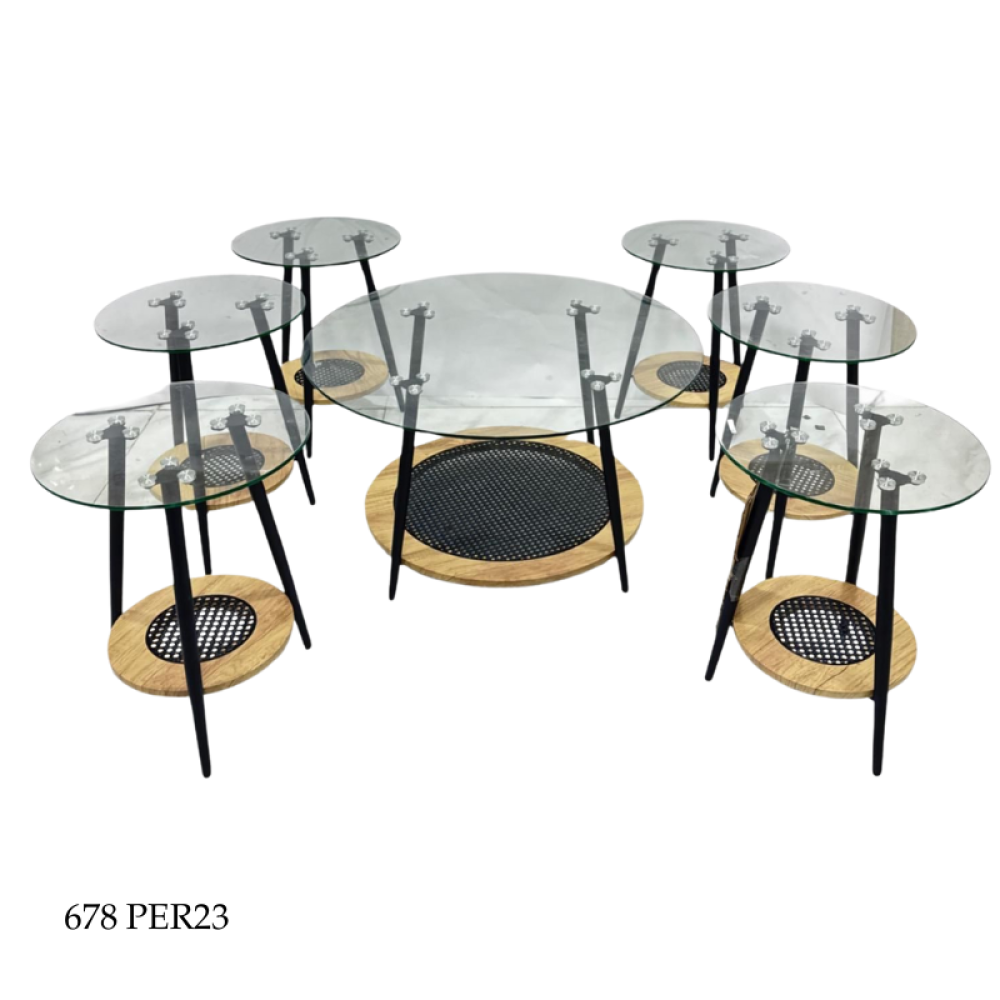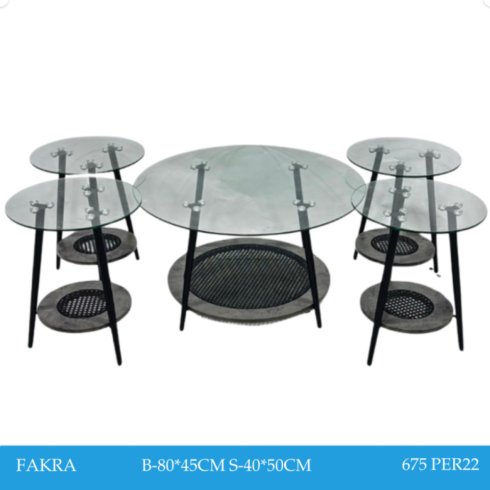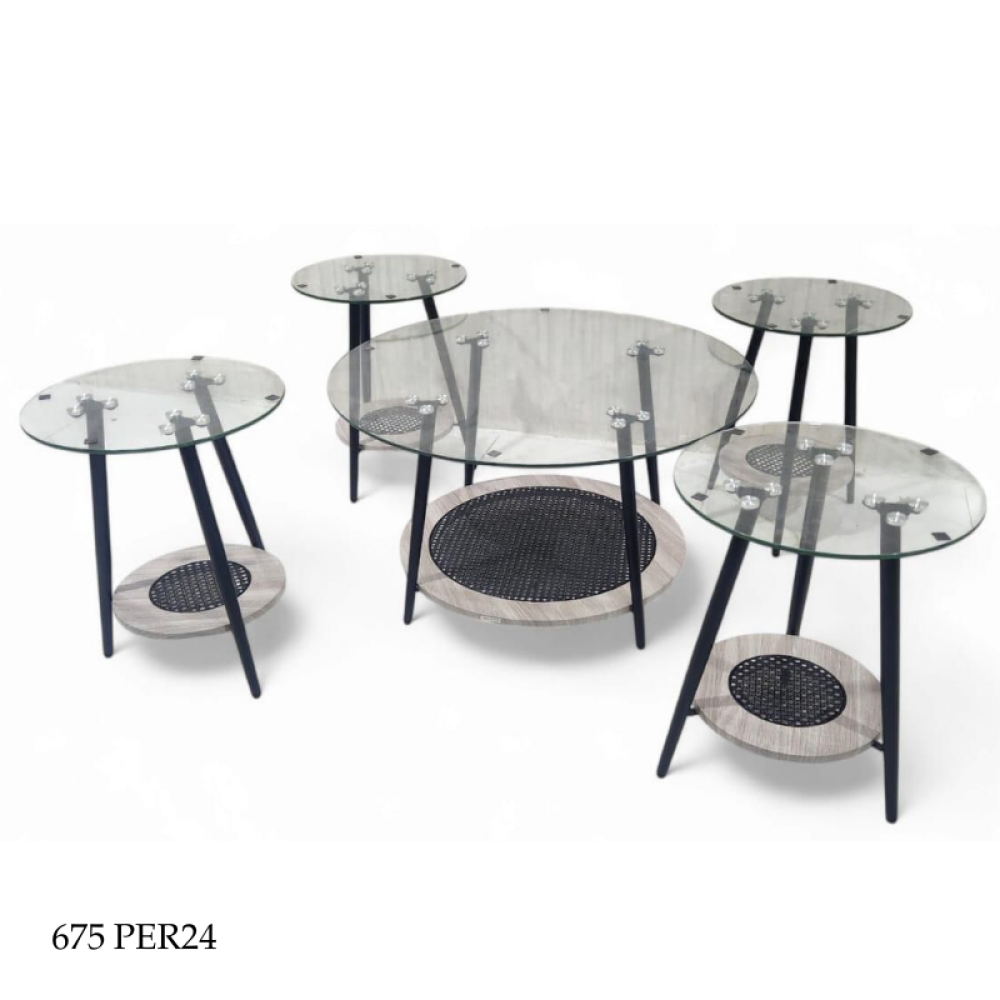 طقم طاولات خدمة 1+4 زجاج وراتان عدة ألوان