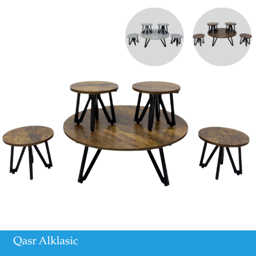 - الكمية: 5 طاولات (1 كبيرة + 4 صغيرة)