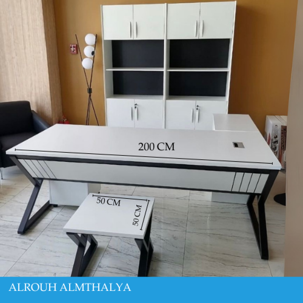 طقم مكتب مدراء مع دولاب فخم ابيض