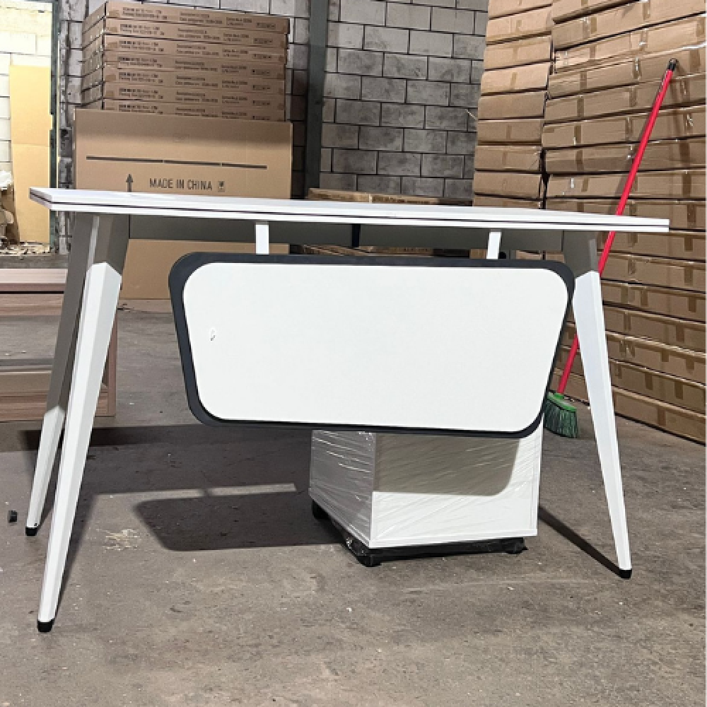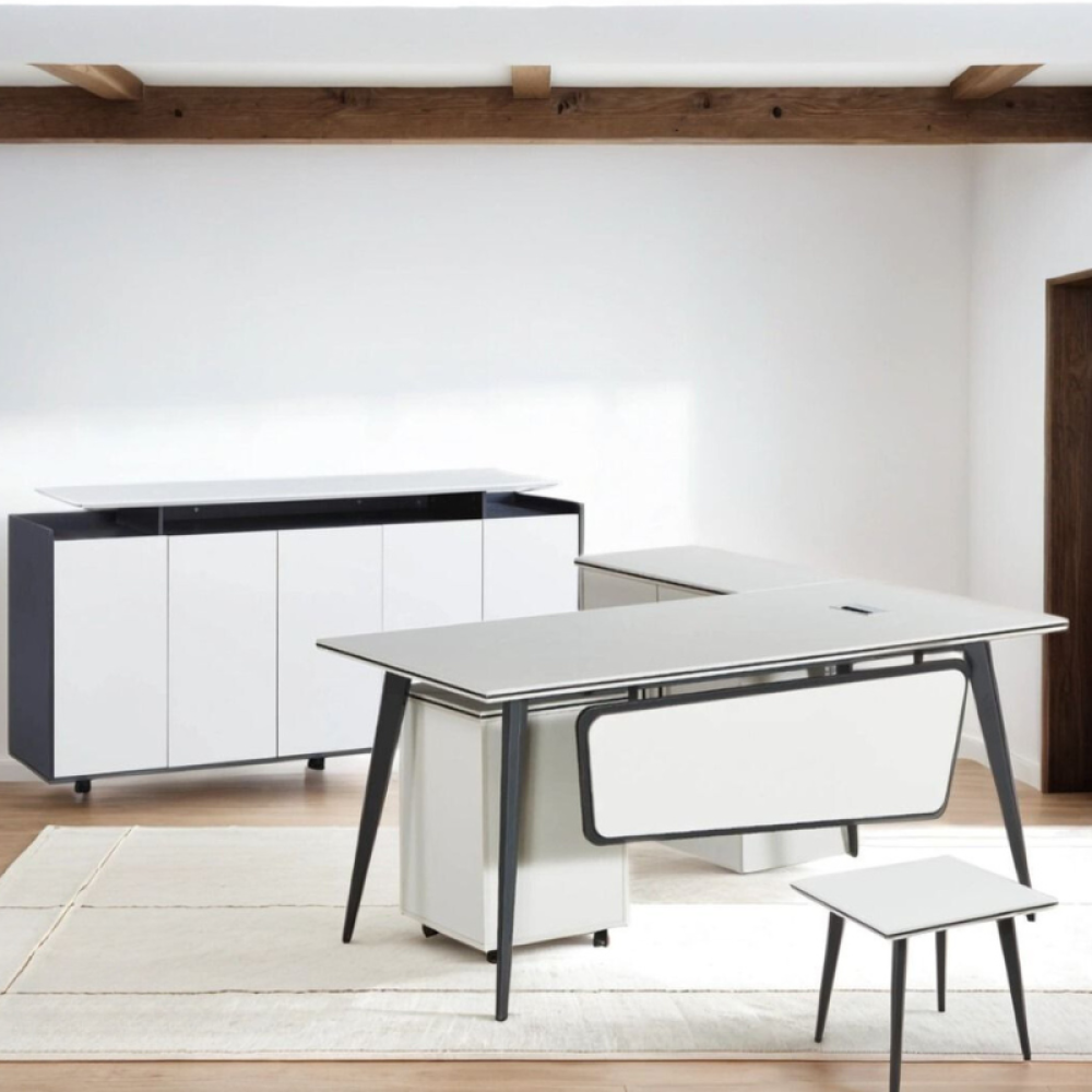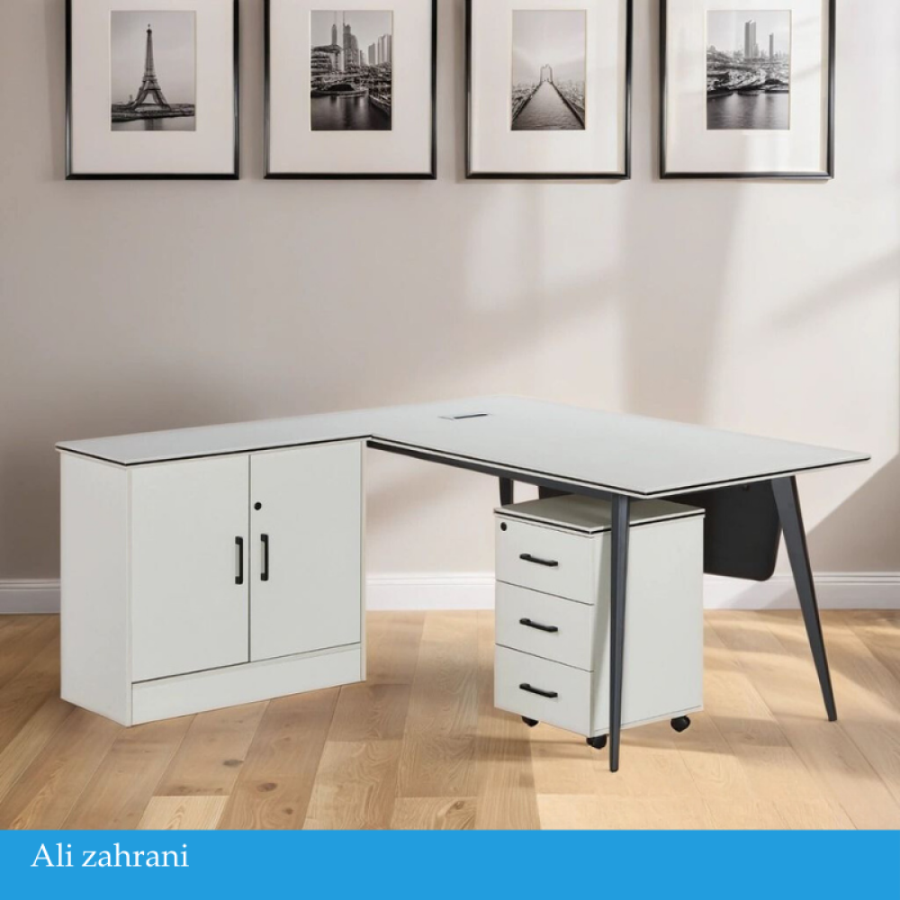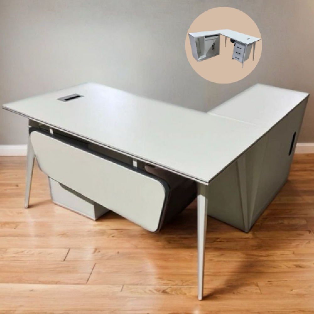 طقم مكتب عمل يتميز بحجم كبير وتصميم فخم ليكون مناسب لغرف المدراء، مصنوع من أجود المواد المتينة، ومزود بسكرتاريا جانبية وخزانة أدراج لتوفير مساحة إضافية لحفظ أوراق ومستندات العمل، هذا الطقم نوفره لكم حصرياً في متجر ستار هومي لذلك لا تتردد في الطلب الآن.