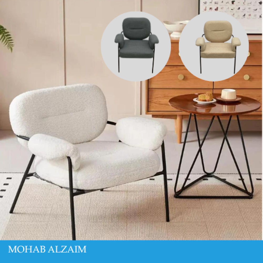 كرسي أنيق ومريح بتصميم فاخر يغمر أجواء الجلوس بدفء وراحة. قماش "بوكليه" الناعم يمنح إحساسًا دافئًا وفخمًا، ما يجعله خيارًا مثاليًا لأي زاوية داخلية سواء كانت جلسة قهوة أو ركن استرخاء.