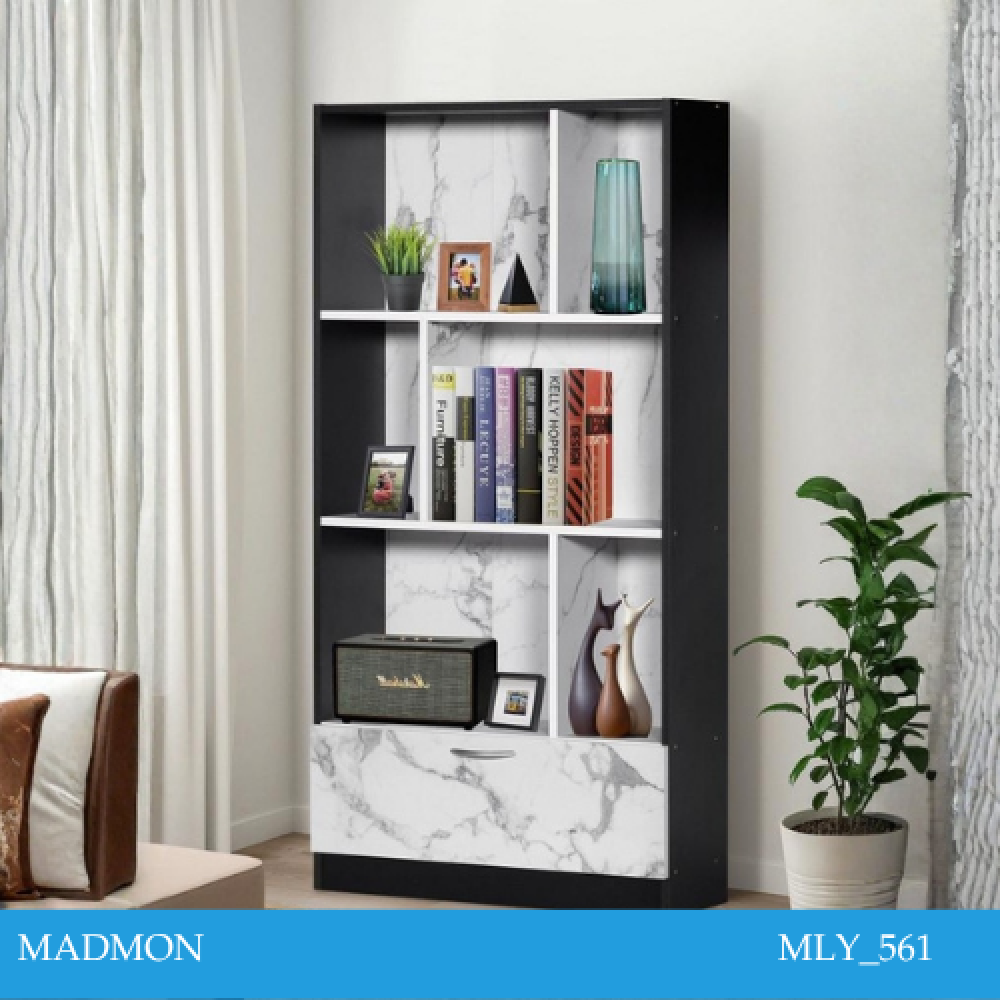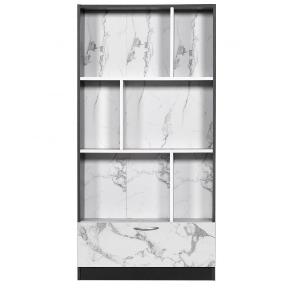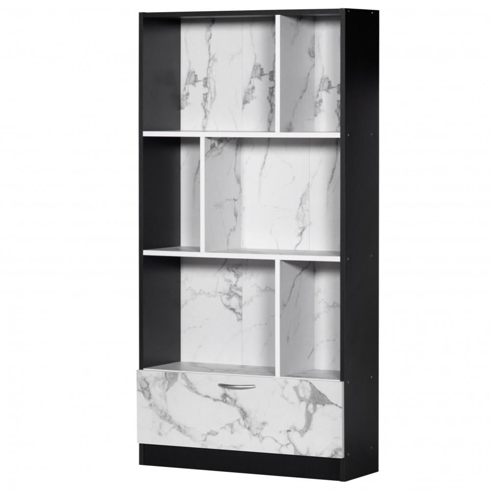 وحدة رفوف مكتبية 3 ارفف لون اسود وابيض رخامي
