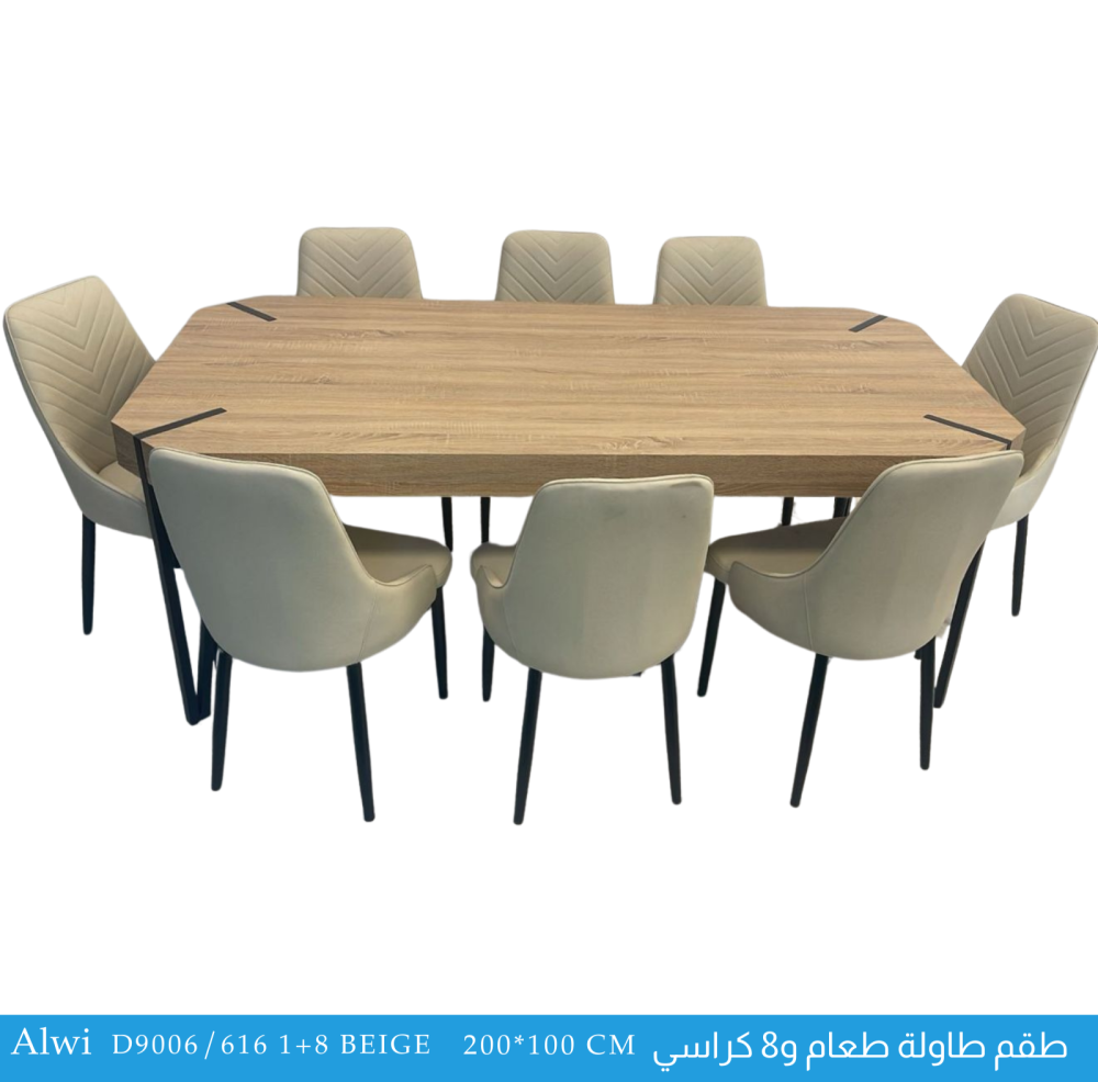 One of the most beautiful and most requested designs of dining table sets, which is suitable for the home dining room or for the decorations of luxurious cafes and restaurants, is this set consisting of a table with beveled edges and a surface decorated with color waves that add a touch of elegance and distinction, in addition to a set of chairs made of the finest materials with a medium-sized design that provides comfort while sitting.