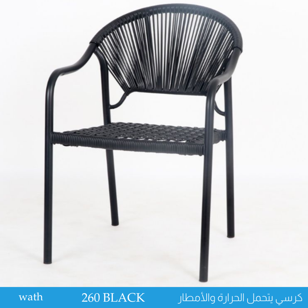 We offer you in Star Home store this seating chair designed in a luxurious and elegant black color that is distinguished by its harmony with all the colors of the environment. It is made of materials that are resistant to heat and rain, and therefore it is suitable for outdoor seating in the garden and indoor seating in the home or office. This chair is equipped with a seat made of ropes intertwined in the shape of diamonds.