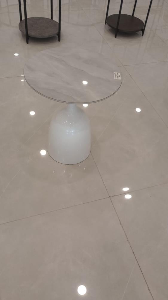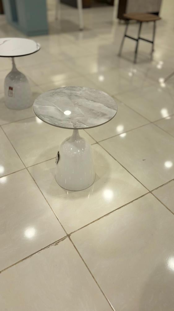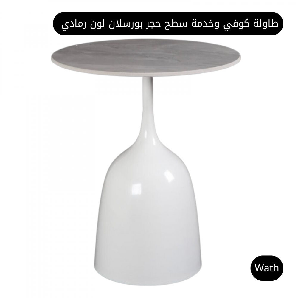 A coffee and serving table with a modern design that adds a touch of modernity to the room's decor. It is made of luxurious porcelain stone with a circular design and is equipped with a stand designed in the shape of a cylinder that gradually increases in width towards the top to add a touch of fluidity and softness to the table's design. This table is suitable for the living room, coffee corner, or even the outdoor garden.