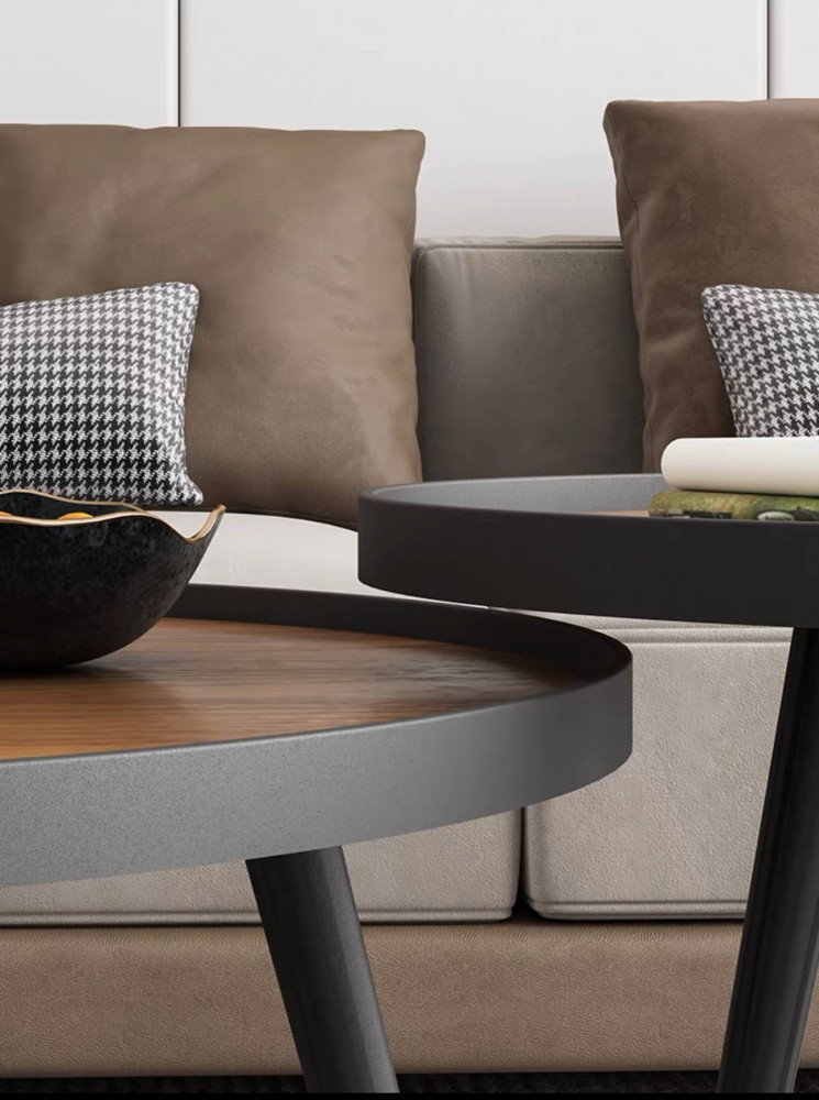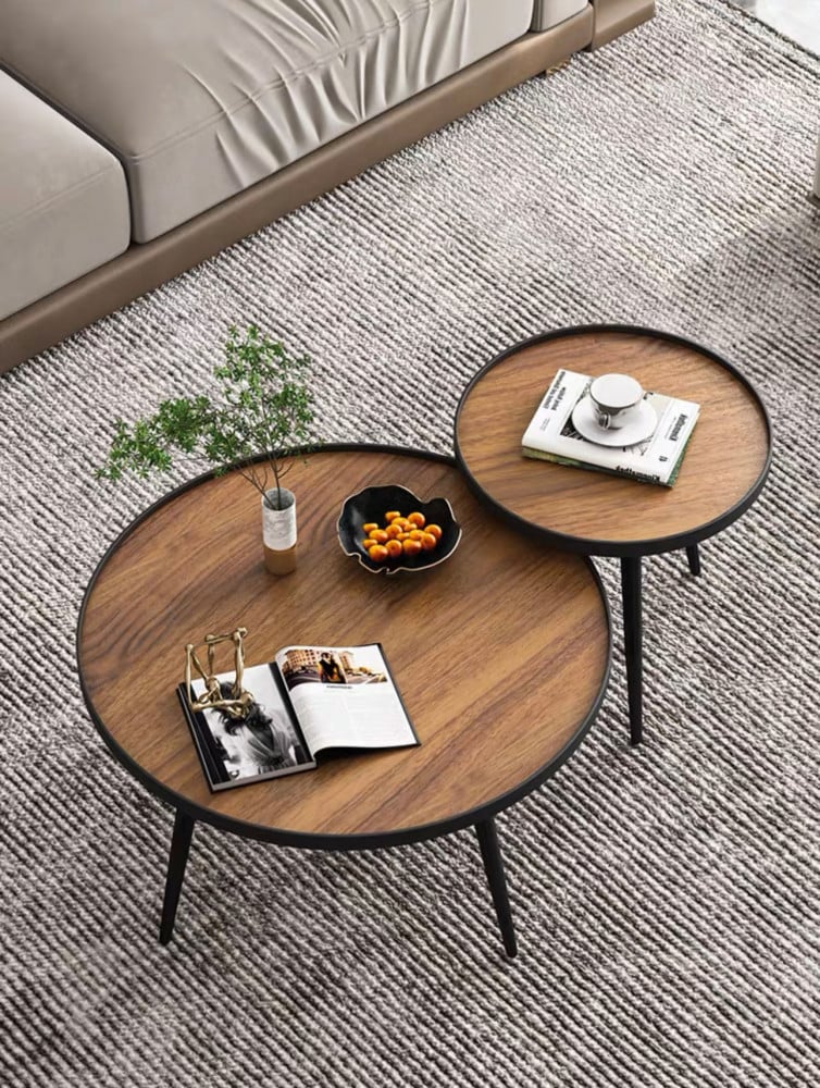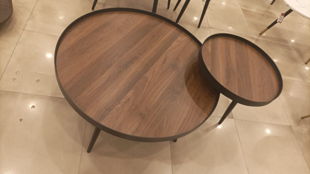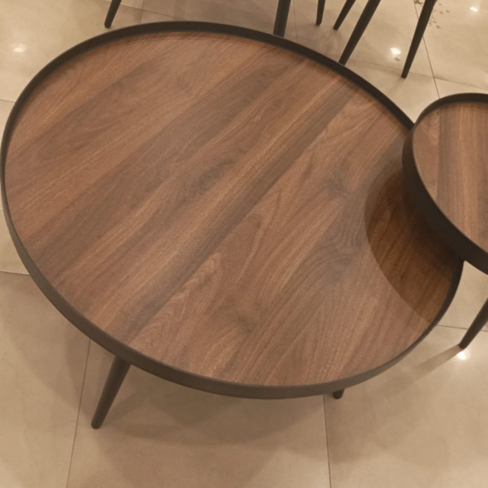 A set of two tables made of the finest wear-resistant materials. This set is suitable for the living room or guest room. The tables feature a wooden surface with metal edges to provide the highest degree of safety for cups and mugs in addition to obtaining a distinctive design that catches the eye.