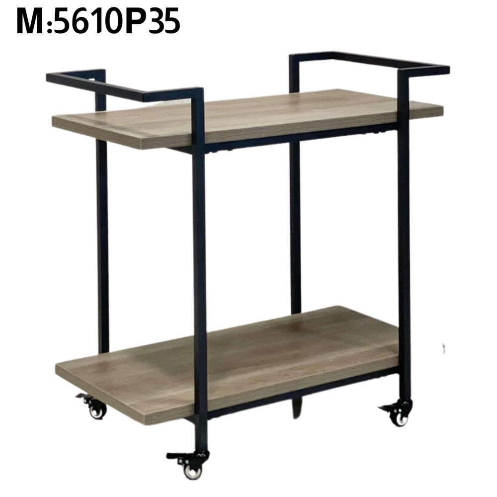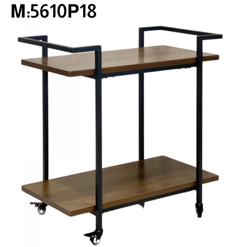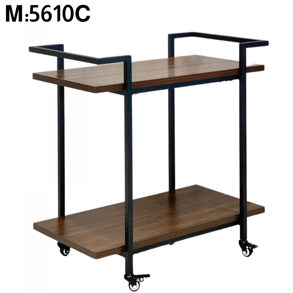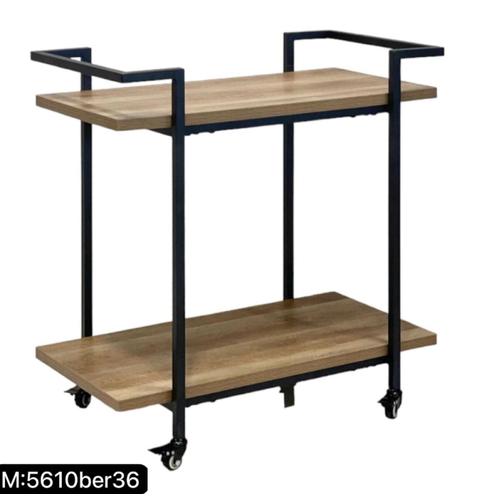 A serving cart made of durable, wear-resistant and break-resistant iron that can withstand heavy weights. It is equipped with two shelves and four lower legs for easy movement and transport of the cart. This cart is suitable for hotels, restaurants and cafes, and can also be used at home during banquets.