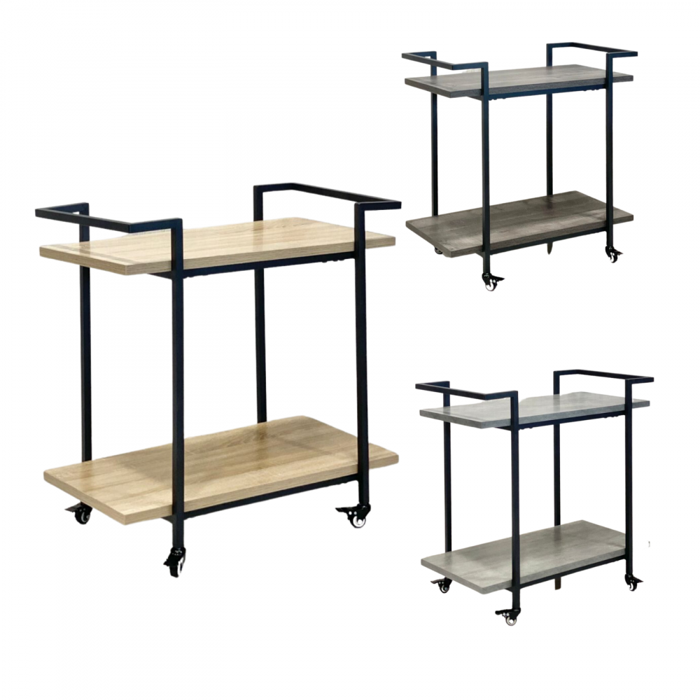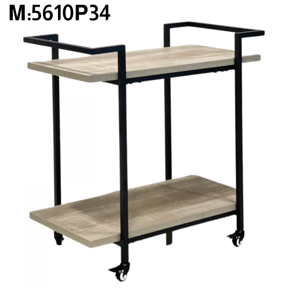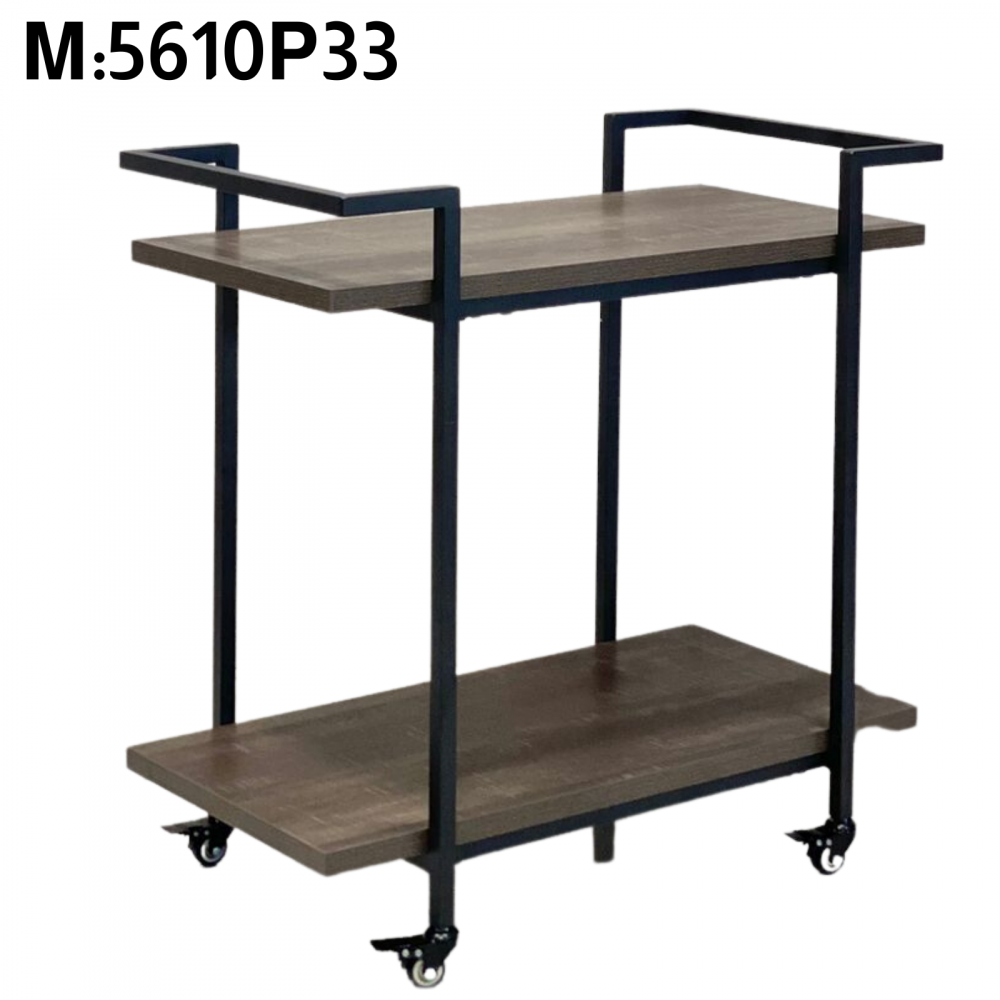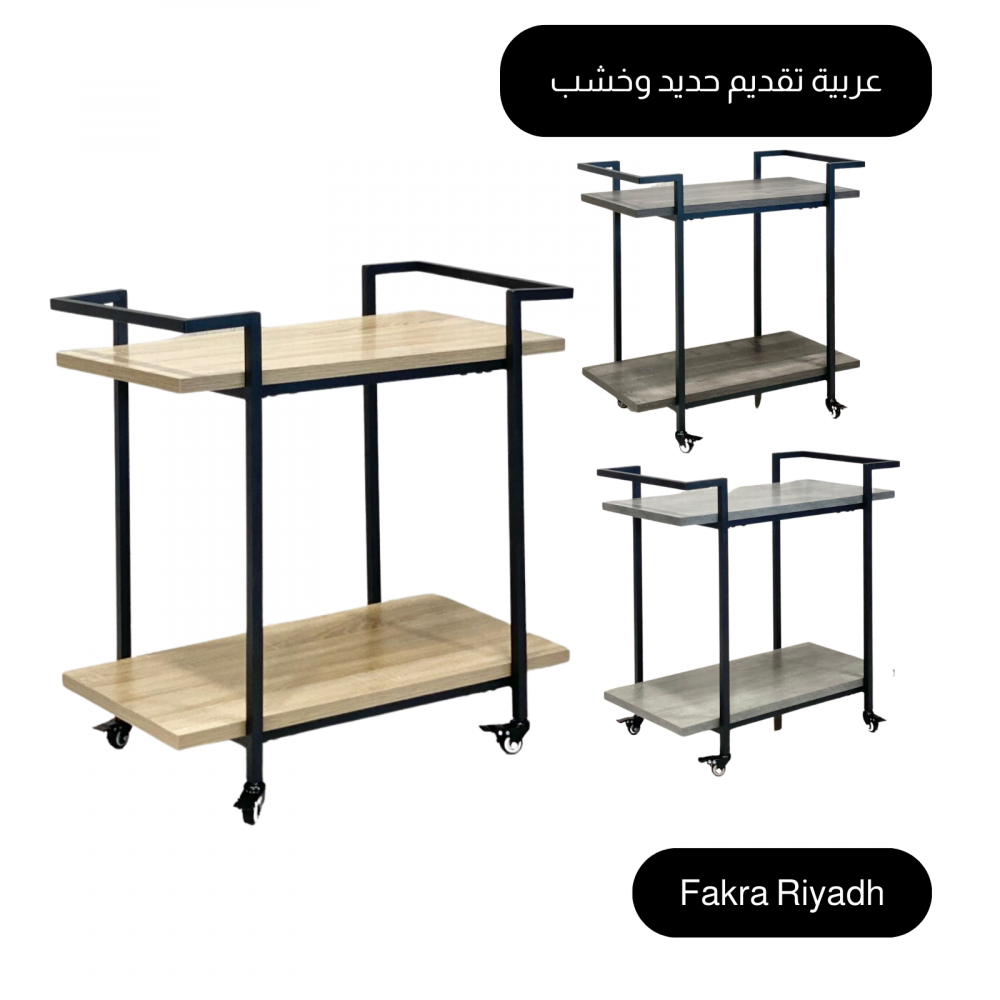 A serving cart made of durable, wear-resistant and break-resistant iron that can withstand heavy weights. It is equipped with two shelves and four lower legs for easy movement and transport of the cart. This cart is suitable for hotels, restaurants and cafes, and can also be used at home during banquets.