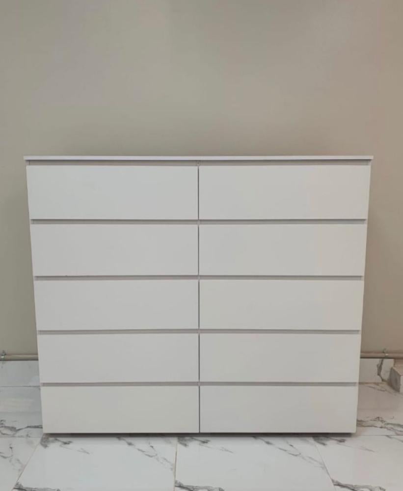 A distinctive large storage cabinet with many wide drawers that provide a large storage space, made of treated materials in an elegant white color, to form an essential piece in the home due to the large storage space it provides in addition to its elegant and modern design that reflects the impression of sophistication of the homeowners.