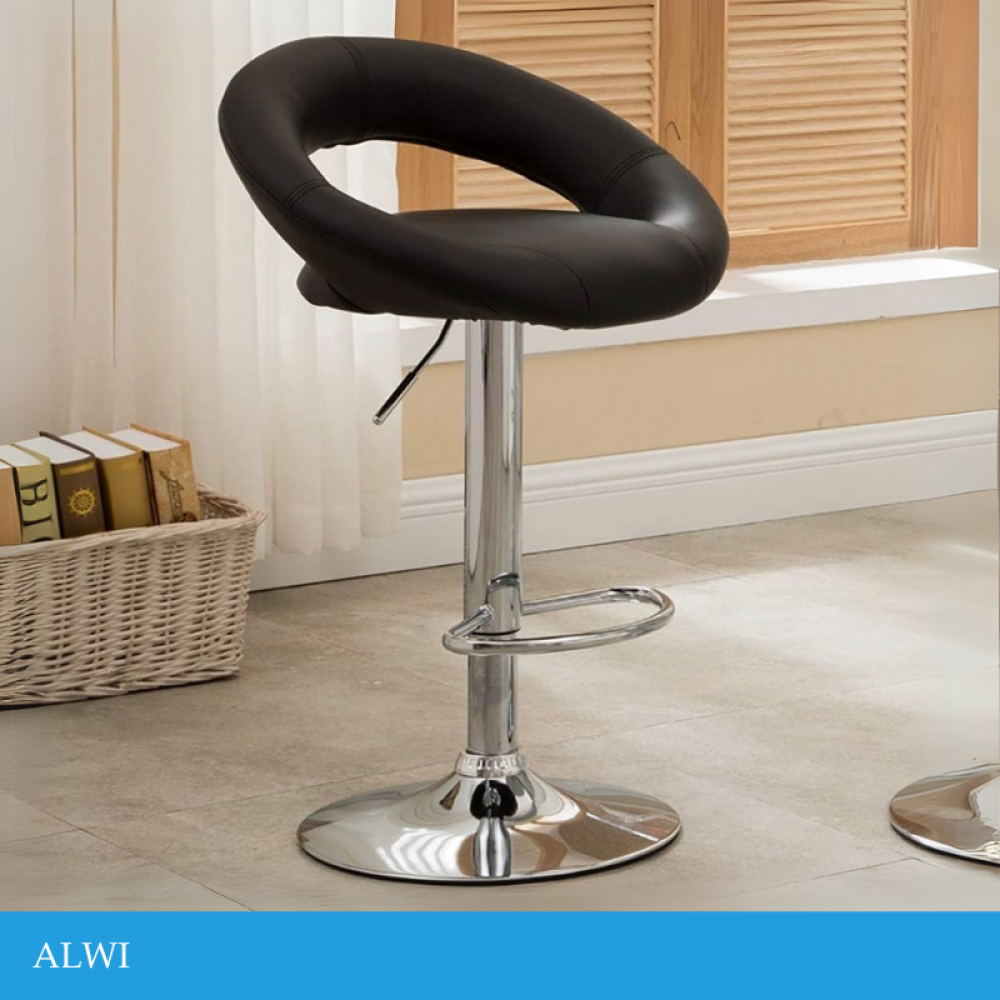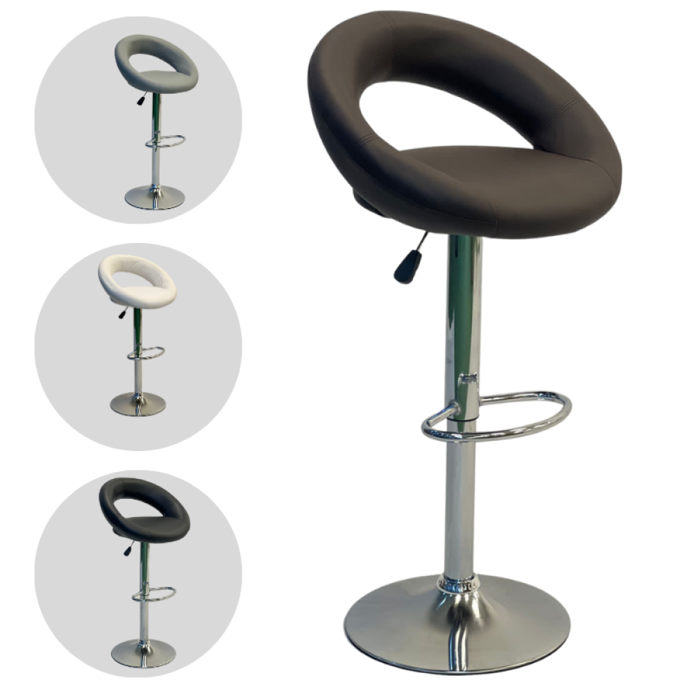 A bar chair made of the finest natural leather that is resistant to peeling and wear, and is distinguished by a perforated design at the bottom of the backrest that adds a touch of distinction and modernity to the design. It is also equipped with a footrest and a piston system to adjust the height of the chair to match the height of the bar table.