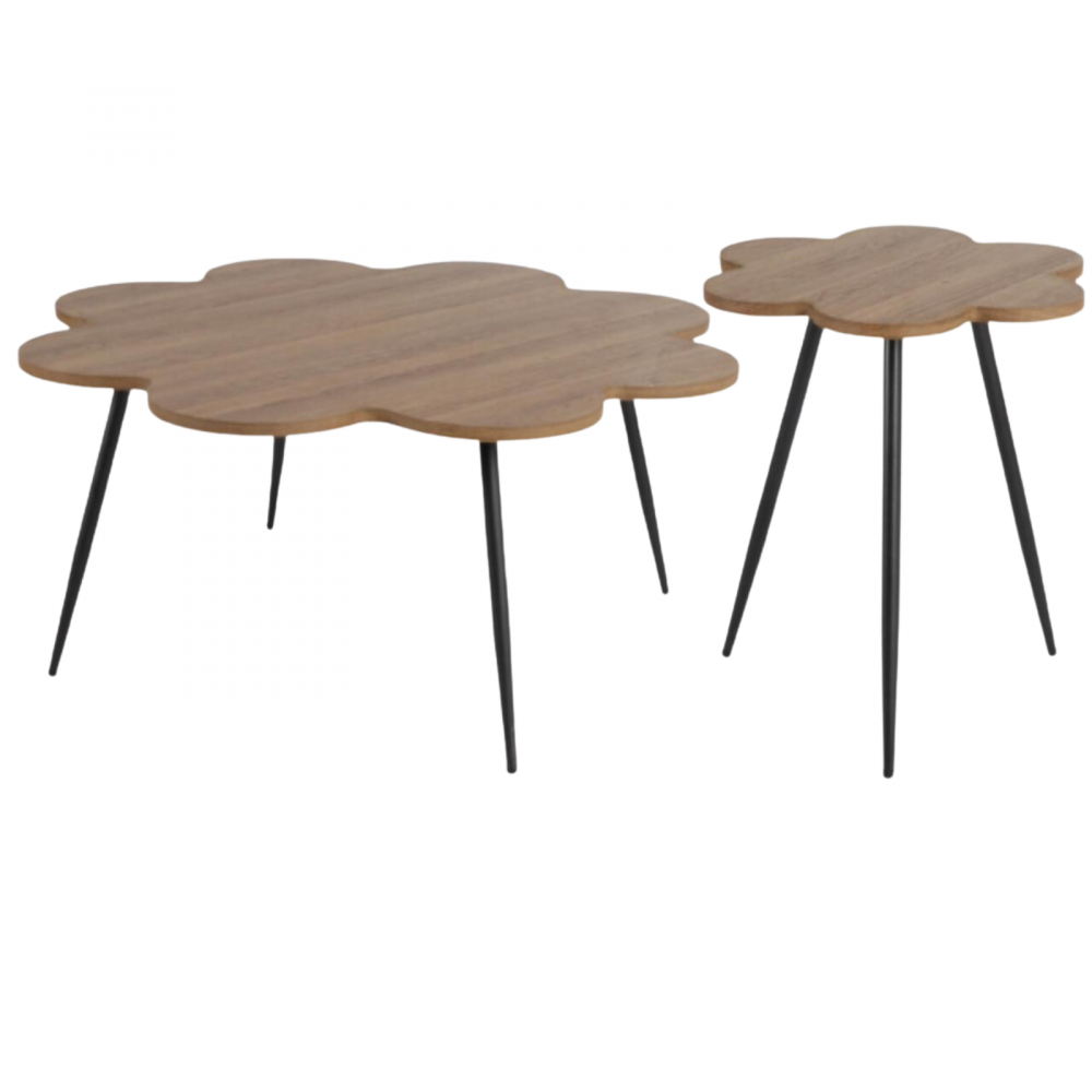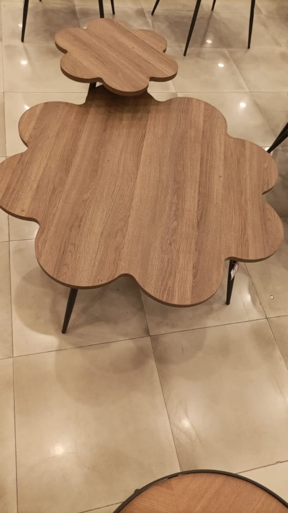 Don't hesitate to order this table set consisting of two tables that feature a luxurious modern design that adds a touch of sophistication to the room's decor, as they feature a design in the form of adjacent semicircles that add a touch of fluidity and delicacy to the surroundings. These tables are made of the finest materials and are equipped with sturdy, wear-resistant iron legs.