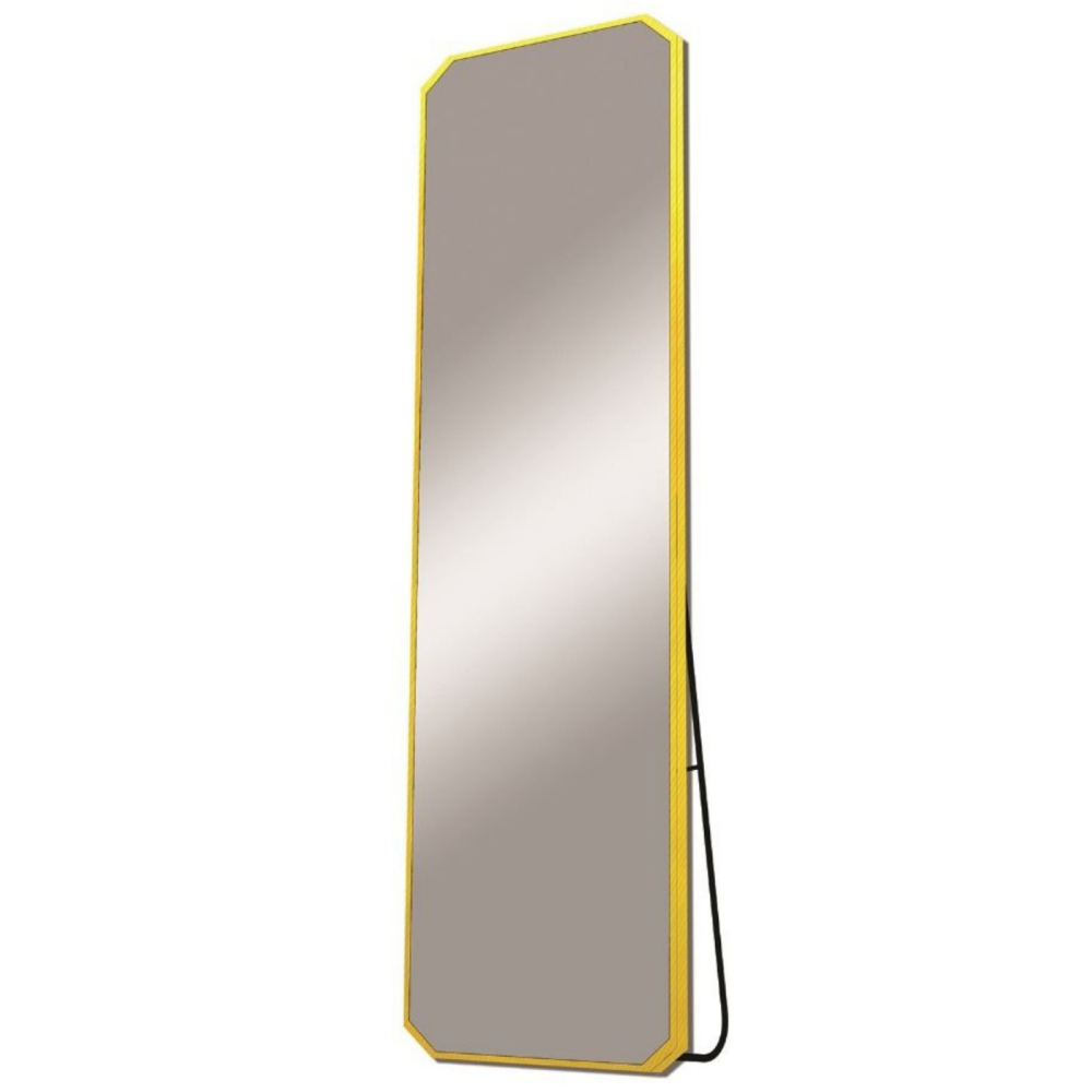 This floor mirror adds a touch of luxury to your room decor with its elegant design. Made of the finest shatter-resistant materials, it has a rectangular shape with beveled edges for added distinction, in addition to an outer metal frame coated in a luxurious gold color.
