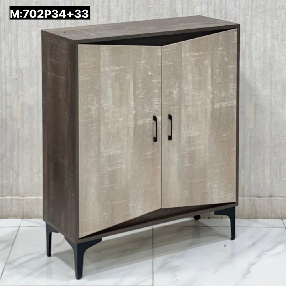 A two-door storage cabinet with sturdy iron legs that can withstand heavy weights. You can use it, madam, as a coffee cabinet to place cups and utensils, and it can also be used as an entry cabinet for shoes. This cabinet is available in several colors, so you can choose the one that suits the surrounding decor.