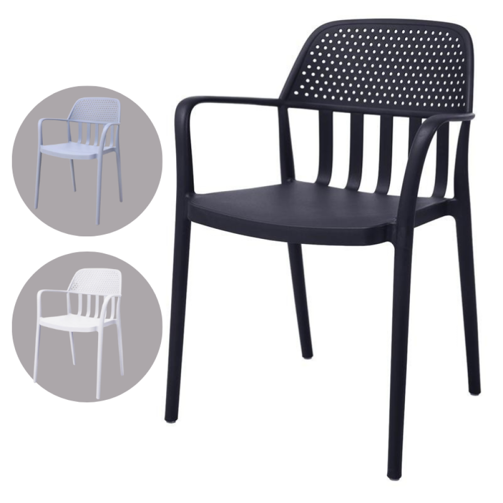 A distinctive garden chair with a practical and modern design made of materials resistant to hot sunlight and rain, making it an ideal choice for outdoor seating in the garden. This chair is designed in a medium size and is equipped with a hollow backrest to provide air permeability and comfort while sitting.