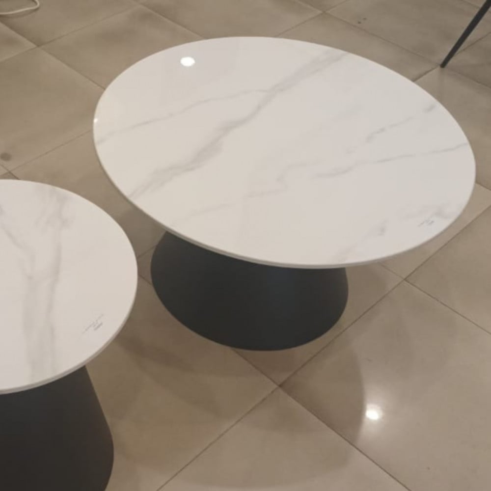 A table made of luxurious porcelain stone, which is characterized by high durability. It is designed in a regular circular shape to add a touch of elegance to the room's decor. You can use it as a half table or in the corners of the room. It is also suitable for use in work offices.