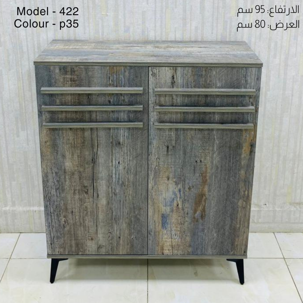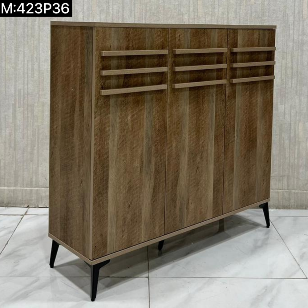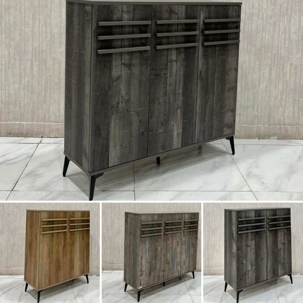 A distinctive shoe cabinet with a modern design that is a distinctive addition to the home entrance decor. It consists of several doors and internal shelves that provide a large space for placing shoes. This cabinet is equipped with sturdy metal legs that are resistant to wear and are distinguished by their ability to bear weights. This cabinet is available in several colors and sizes for you to choose the appropriate one.