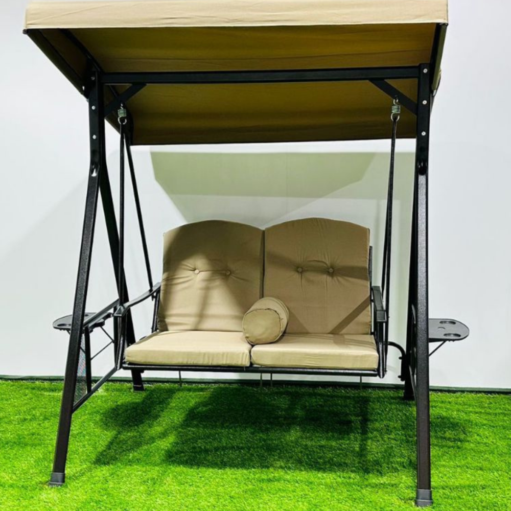 Enjoy spending the most beautiful moments with your loved ones in the outdoor garden by ordering this swing designed for two people, made of the finest durable and break-resistant metal materials. This swing is equipped with cushions made of fabric stuffed with compressed foam to provide comfort while sitting, in addition to an umbrella to protect from the sun.