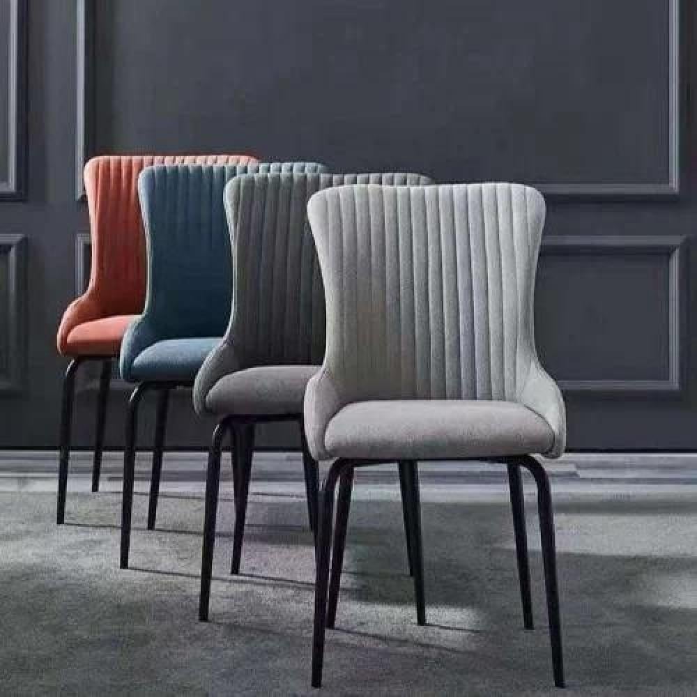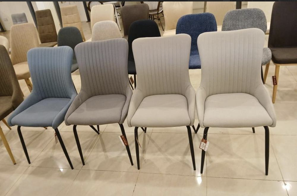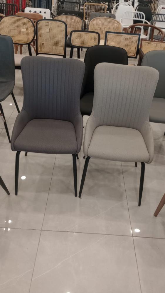 A set of dining chairs made of soft velvet, lined with a thin layer of sponge, and equipped with a backrest decorated with longitudinal stitches that add a touch of distinction and monotony to the design, in addition to legs made of durable, break-resistant iron, to form a distinctive addition to the dining table, and they can also be used as waiting chairs.
